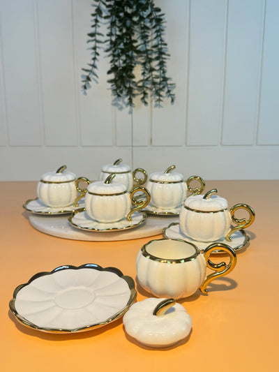 Altın Detaylı Çiçekli Porselen Kahve Fincanı 6’lı Set