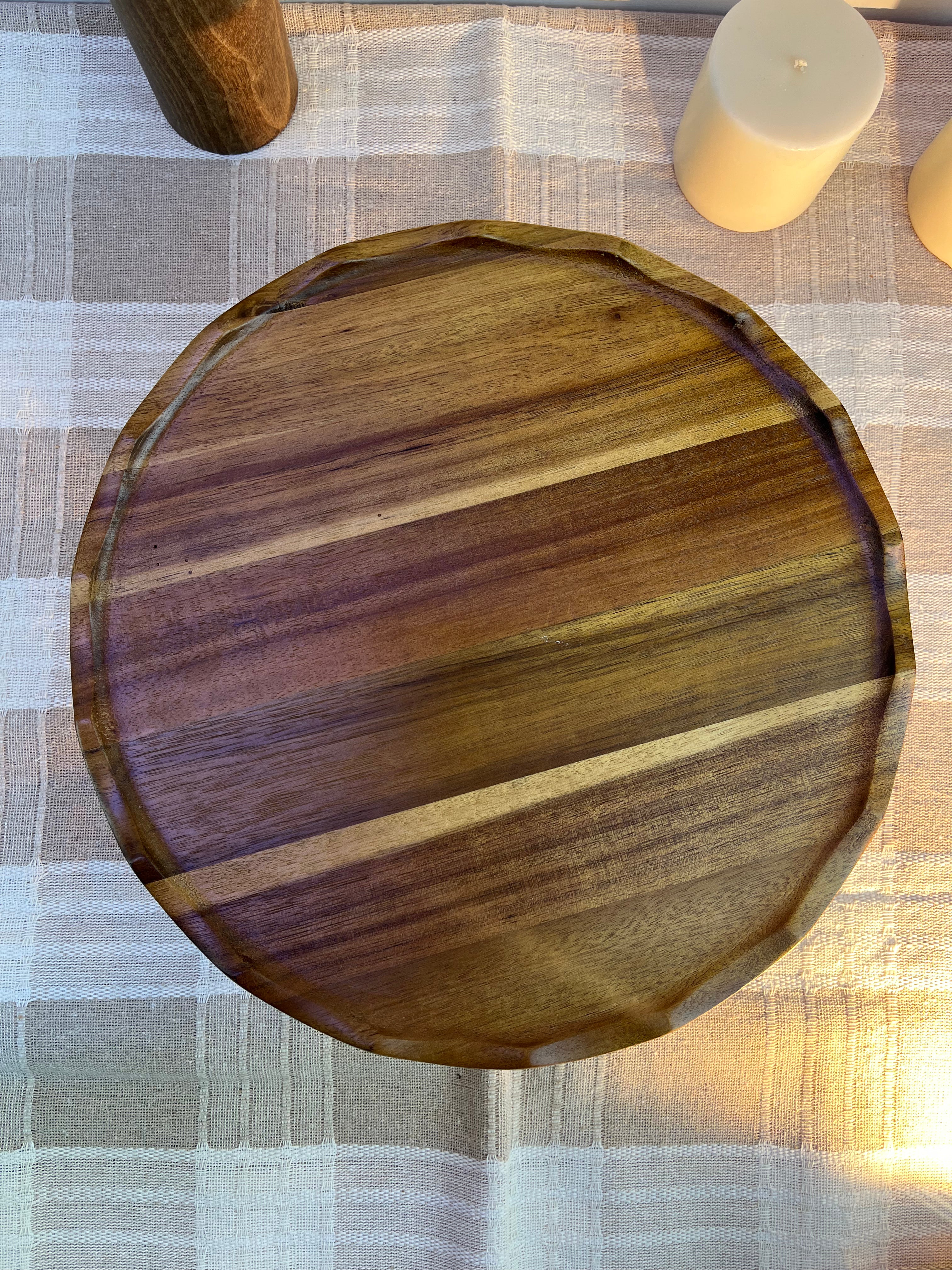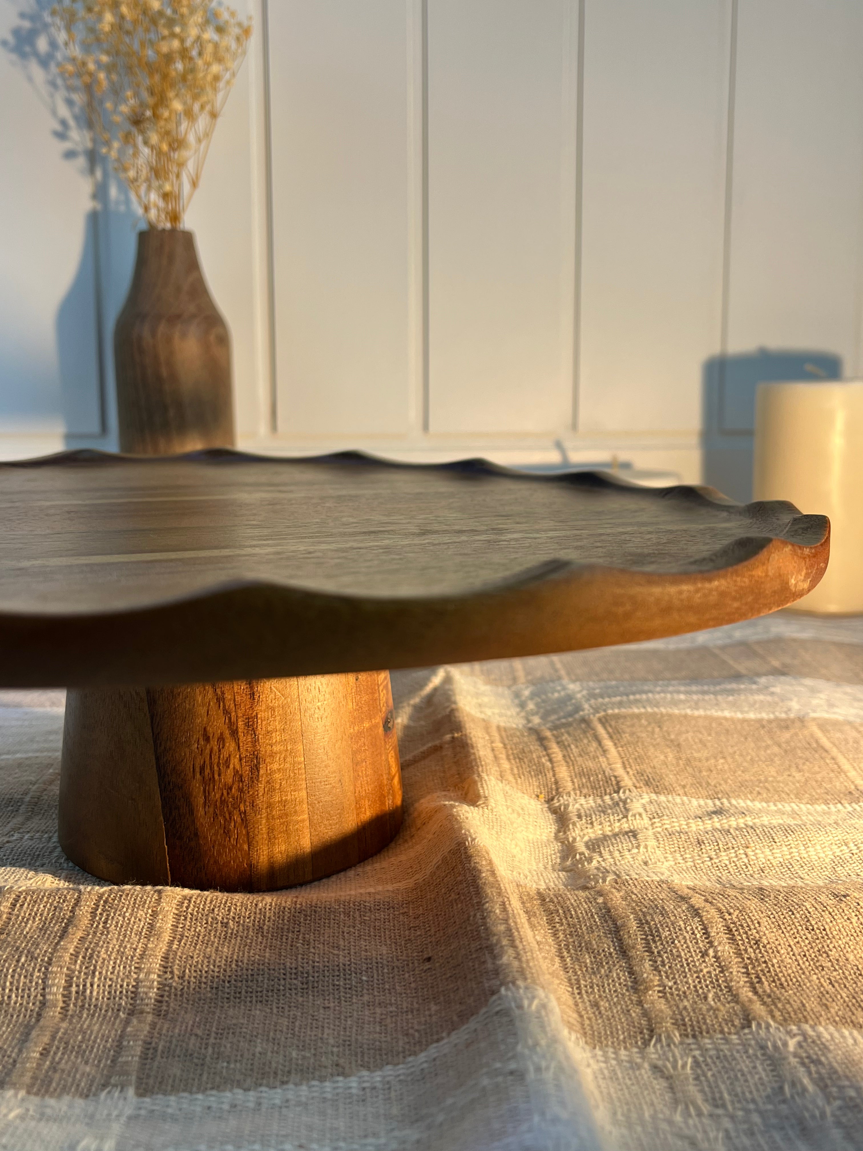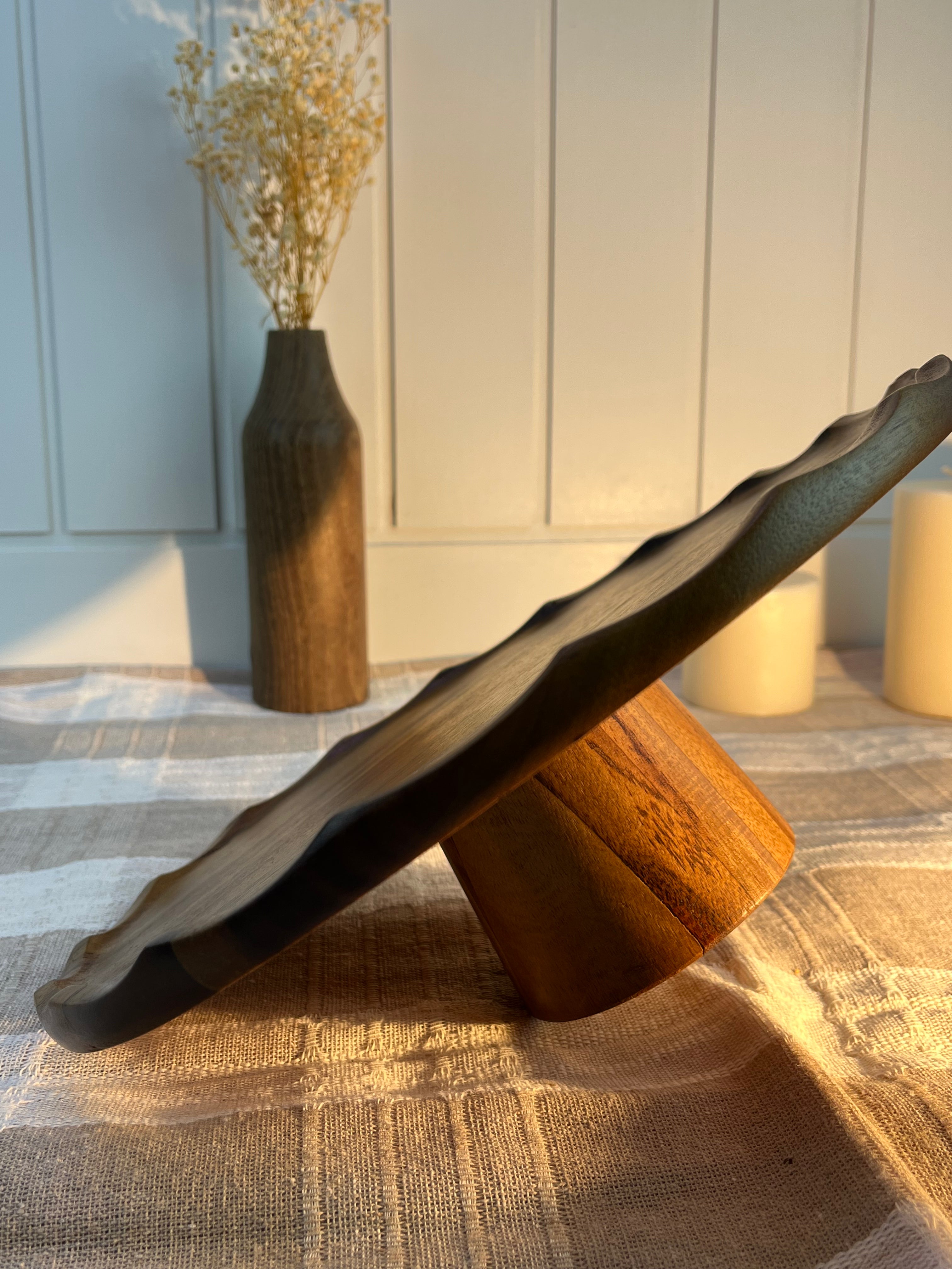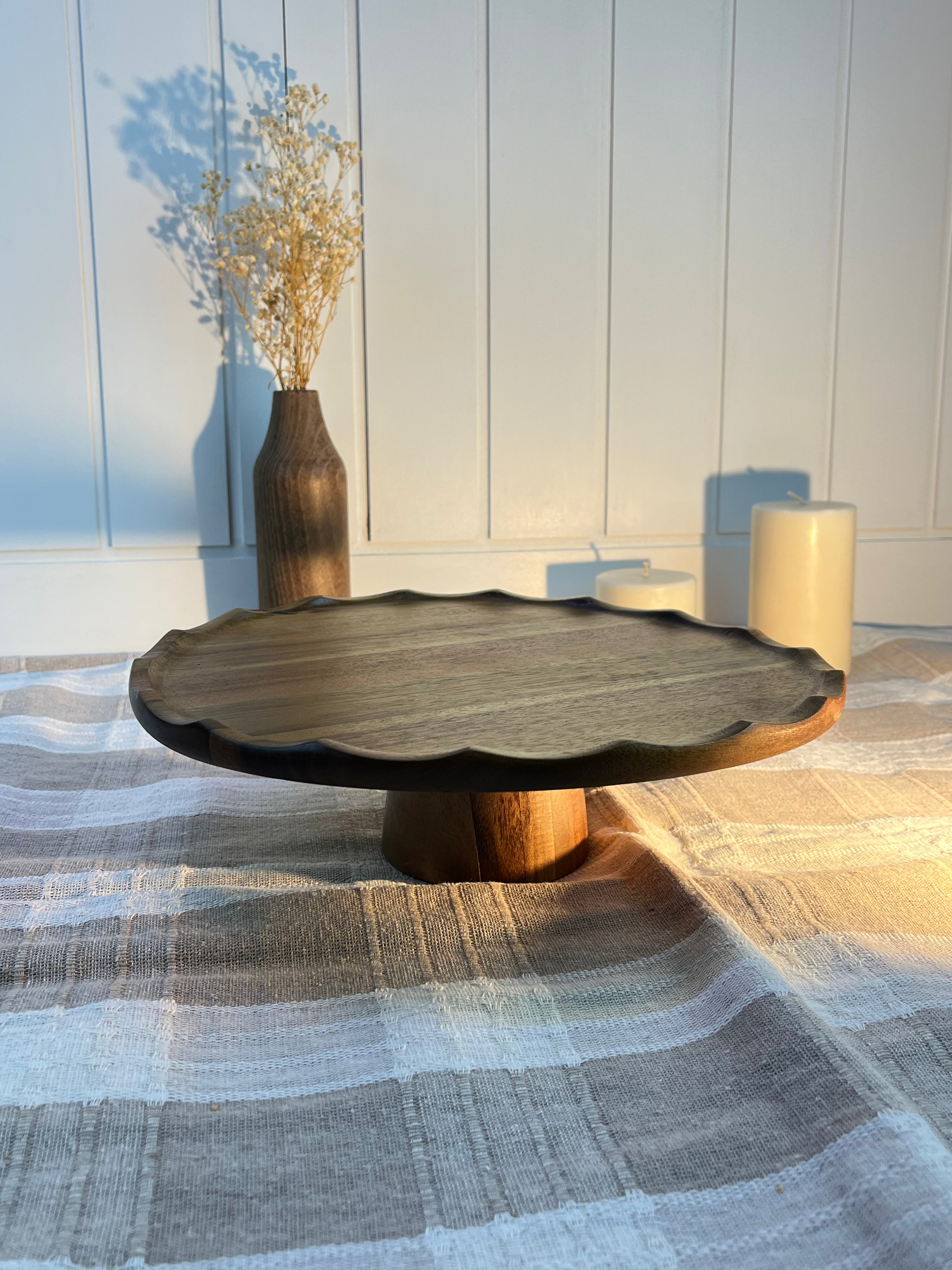 %100 doğal akasya ağacından üretilen bu yuvarlak ayaklı sunumluk, sofralara şıklık ve doğal bir zarafet katar. Ayaklı formu sayesinde sunumları daha estetik hale getirirken, servis sırasında rahat bir kullanım sunar. Doğal ahşap dokusu ve sıcak tonlarıyla hem modern hem de rustik sofralarla uyum sağlar.