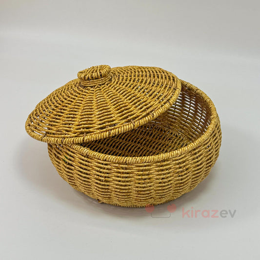 Rattan Yuvarlak Kapaklı Organizer Sepet Küçük Boy
