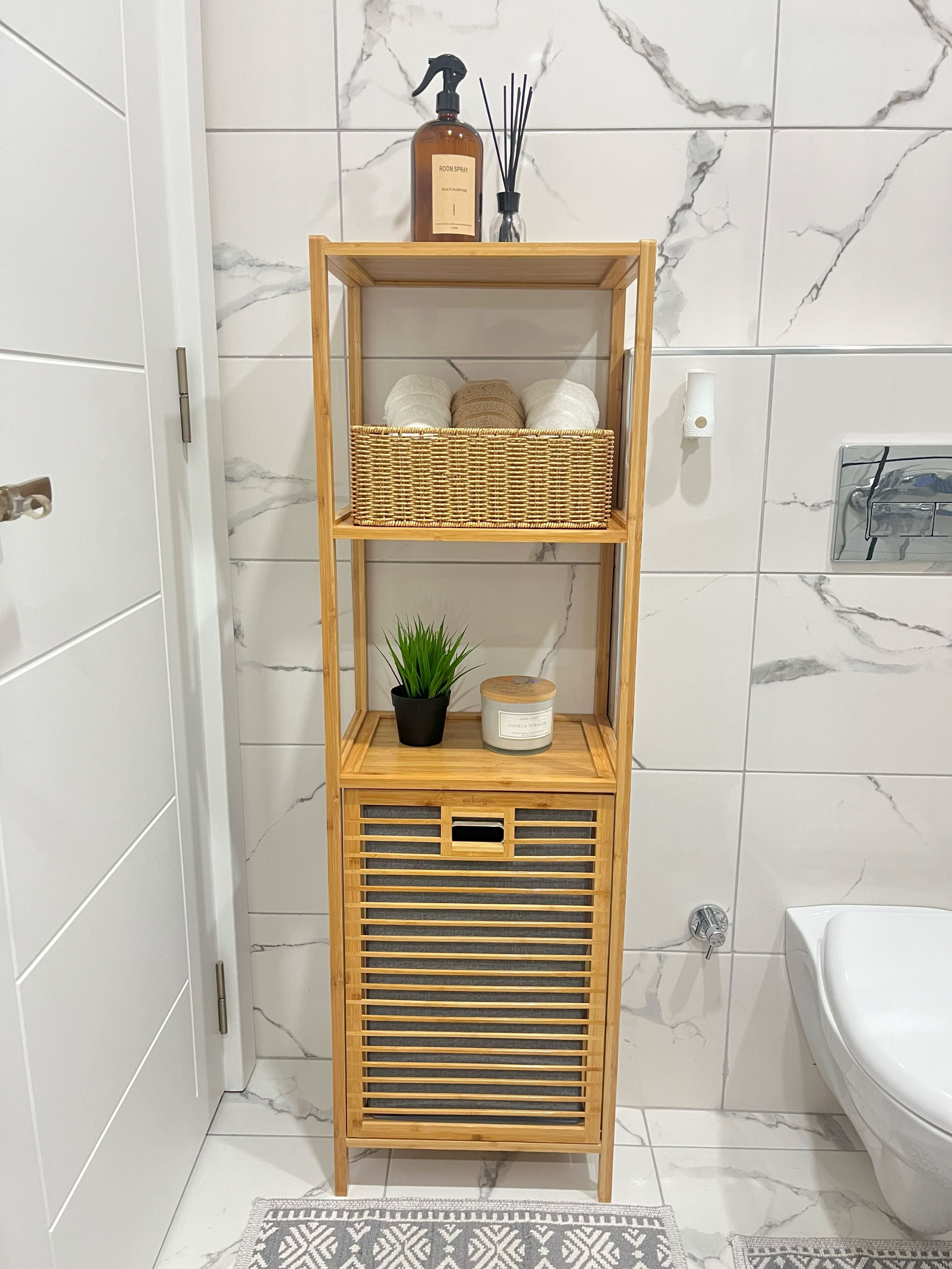 Modern tasarımıyla banyonuza şıklık katan Bambu Kirli Sepetli 3 Raflı Banyo Düzenleyici, hem fonksiyonel hem de estetik bir çözüm sunar.