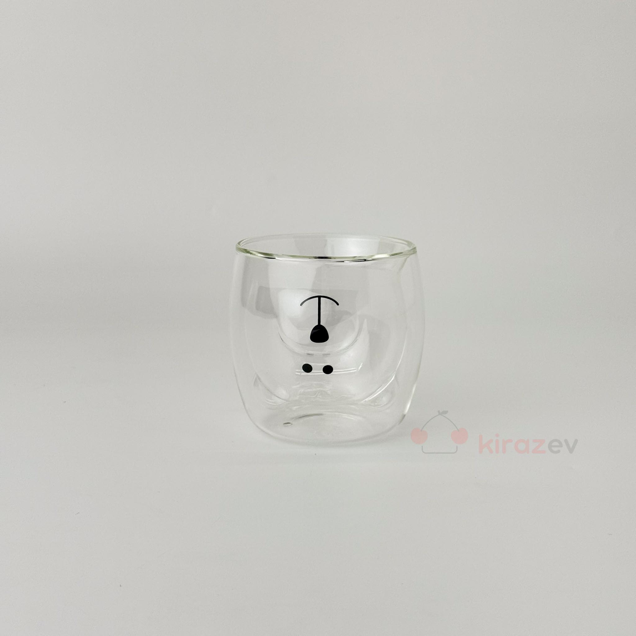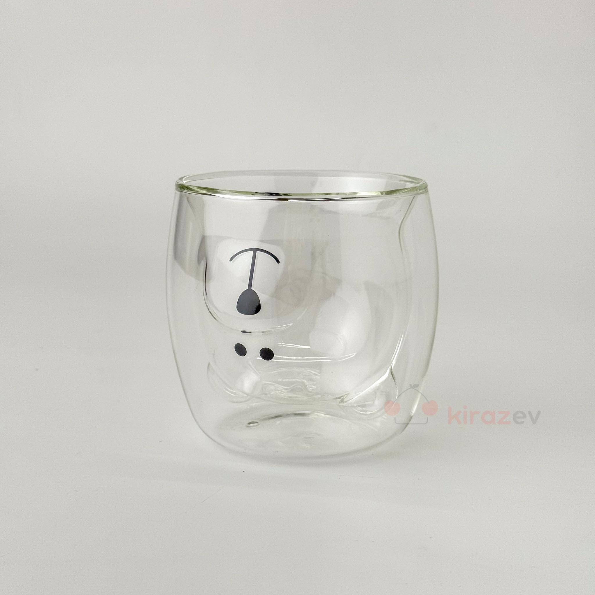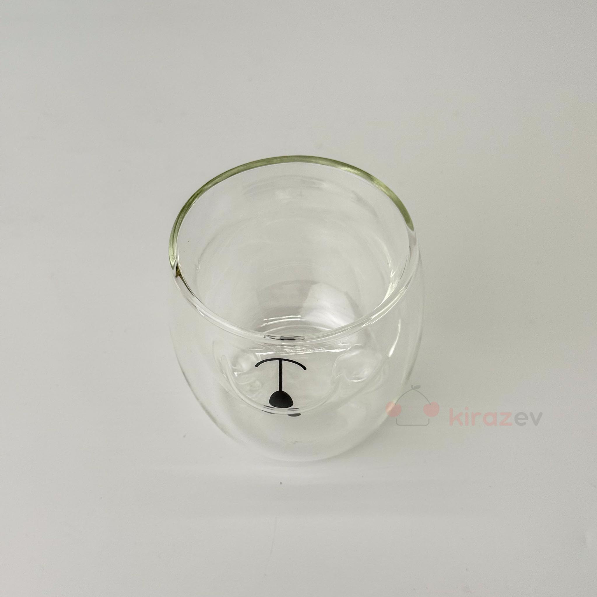 Sevimli sunumlar için kısmında ayıcık formu bulunan bu çift cidarlı cam bardak ile içecek sunumlarınıza neşe katın. Isıya dayanıklı yapısıyla hem sıcak hem soğuk içecekler için ideal.
