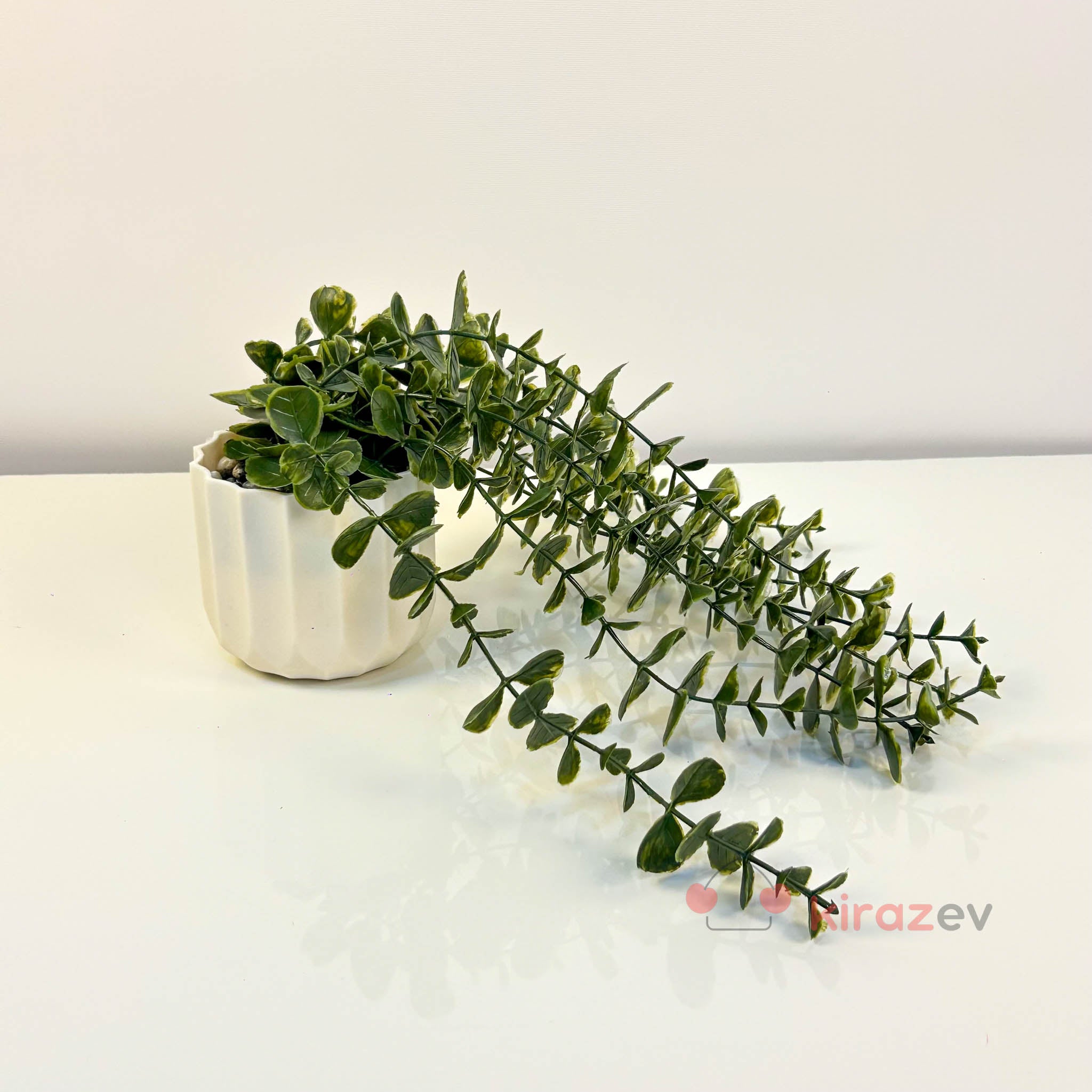 • 1 x Beyaz Çizgili Saksıda Yeşil Okaliptüs Sarkıt Yapay Bitki