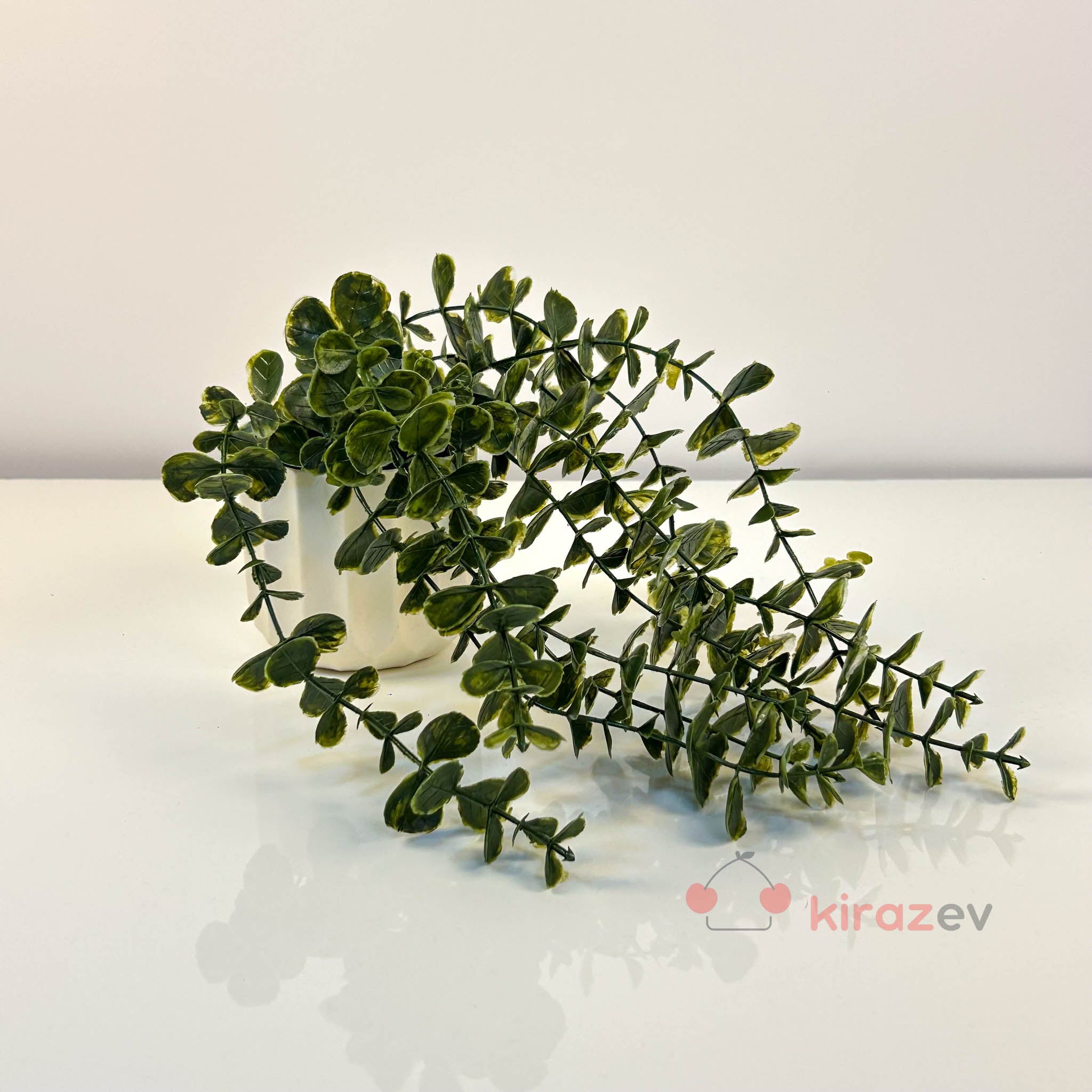 Beyaz Çizgili Saksıda Yeşil Okaliptüs Sarkıt Yapay Bitki