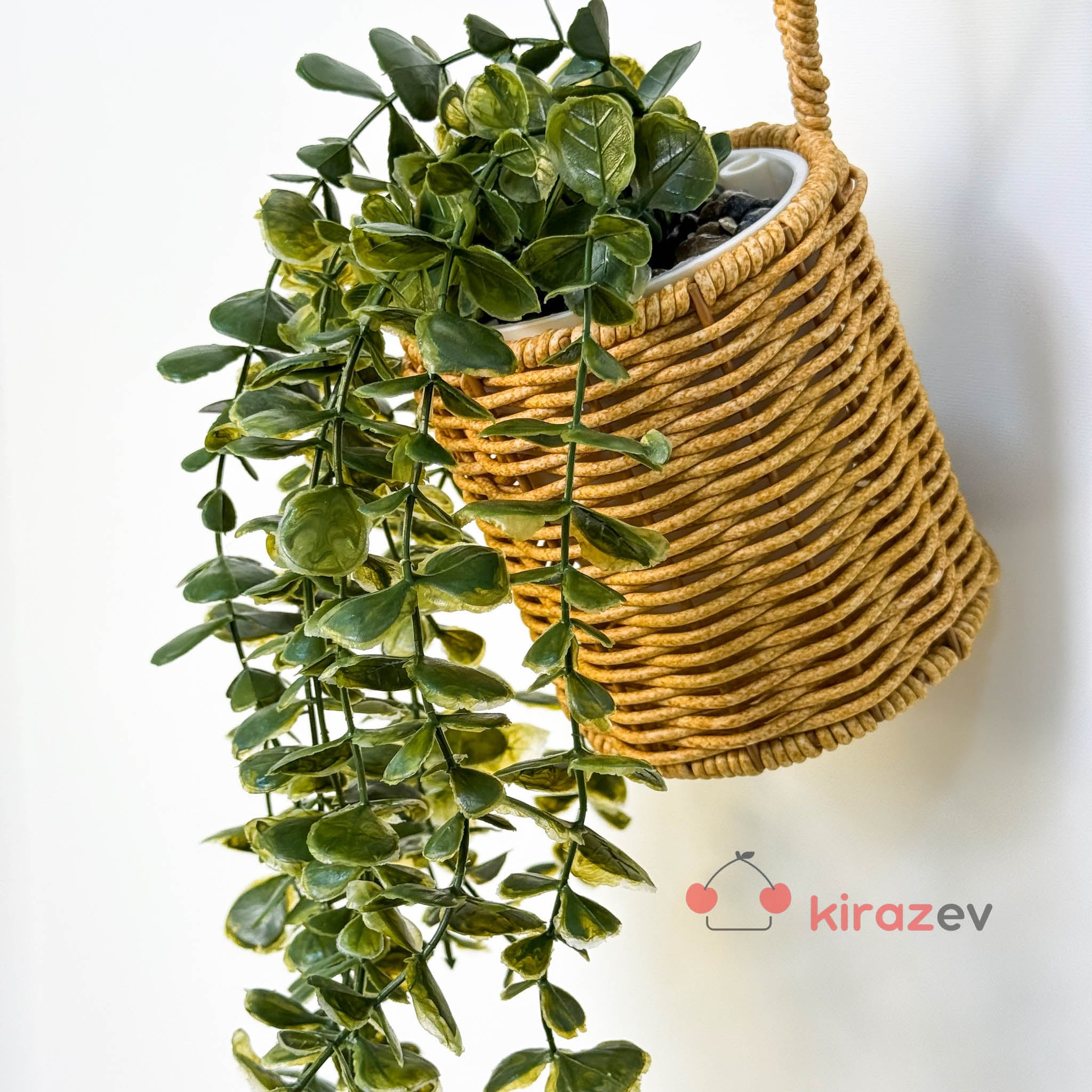 Doğal okaliptüs görünümünü modern bir dokunuşla sunan beyaz çizgili saksıda yeşil okaliptüs sarkıt yapay bitki, yaşam alanlarınıza ferah ve şık bir atmosfer kazandırır. Bakım gerektirmeyen yapısıyla uzun süre ilk günkü formunu korur.