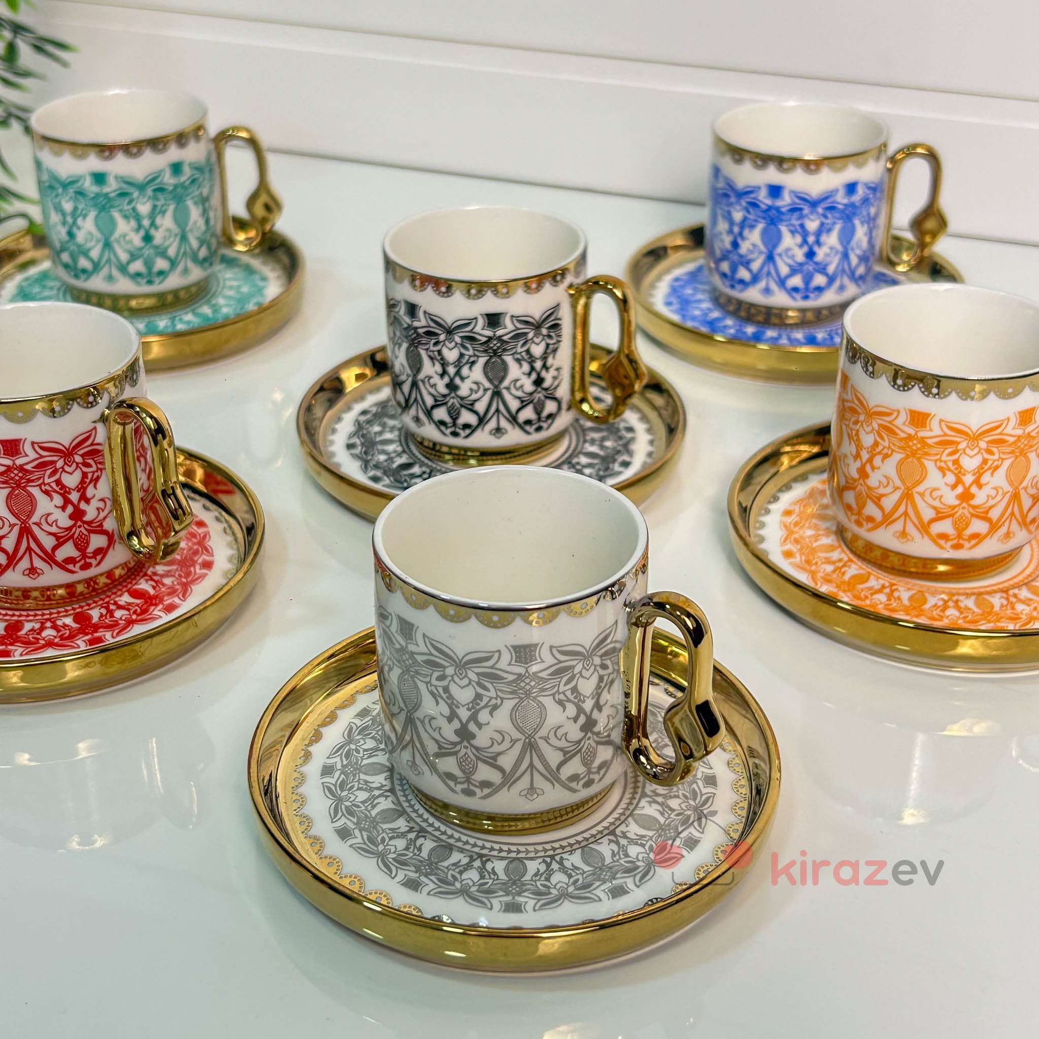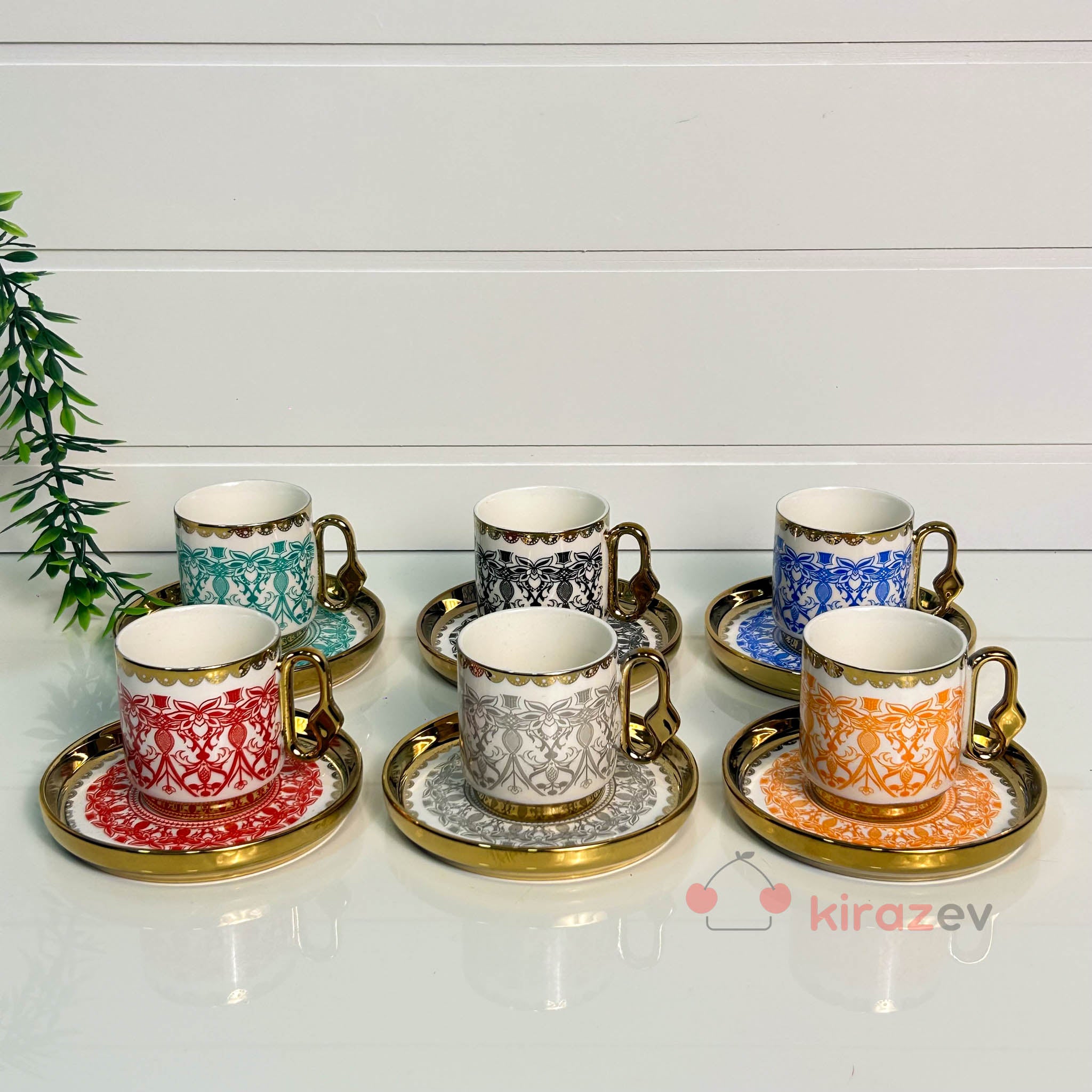 Renkli Altın Yaldızlı Kahve Fincanı Seti 6’lı