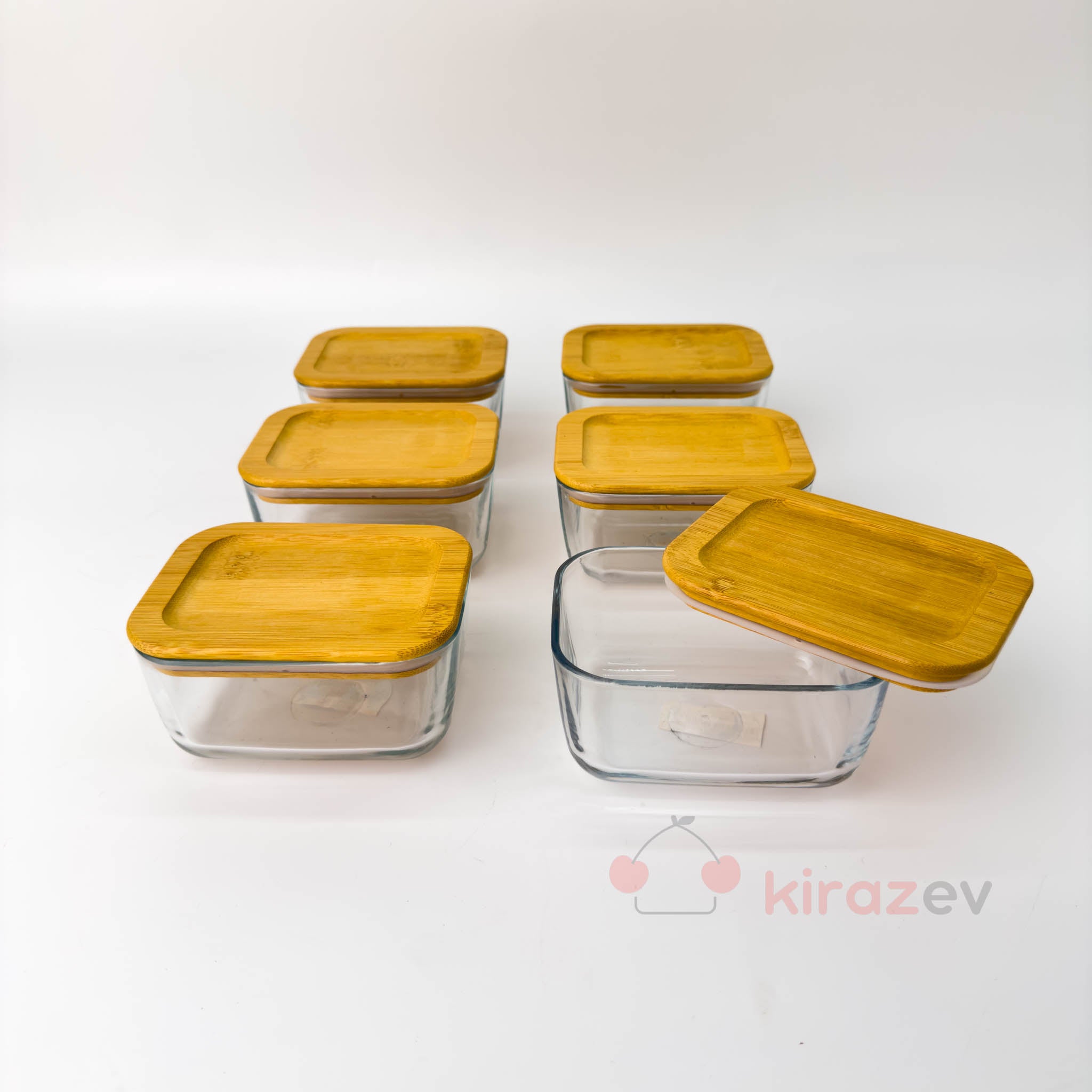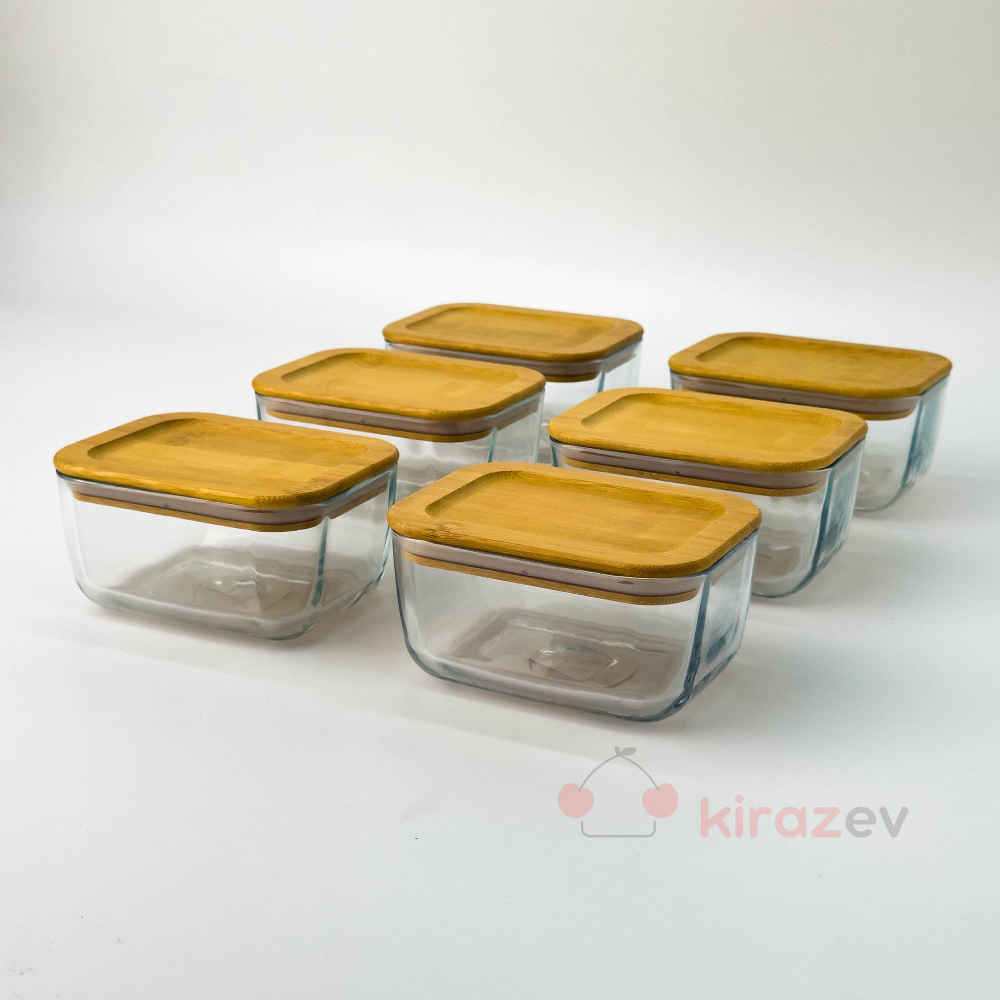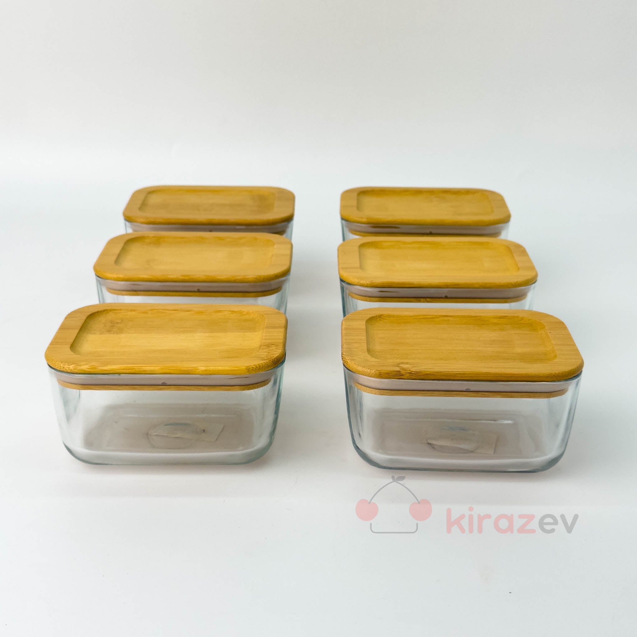 Cam Saklama Kabı Seti Bambu Kapaklı 6’lı
