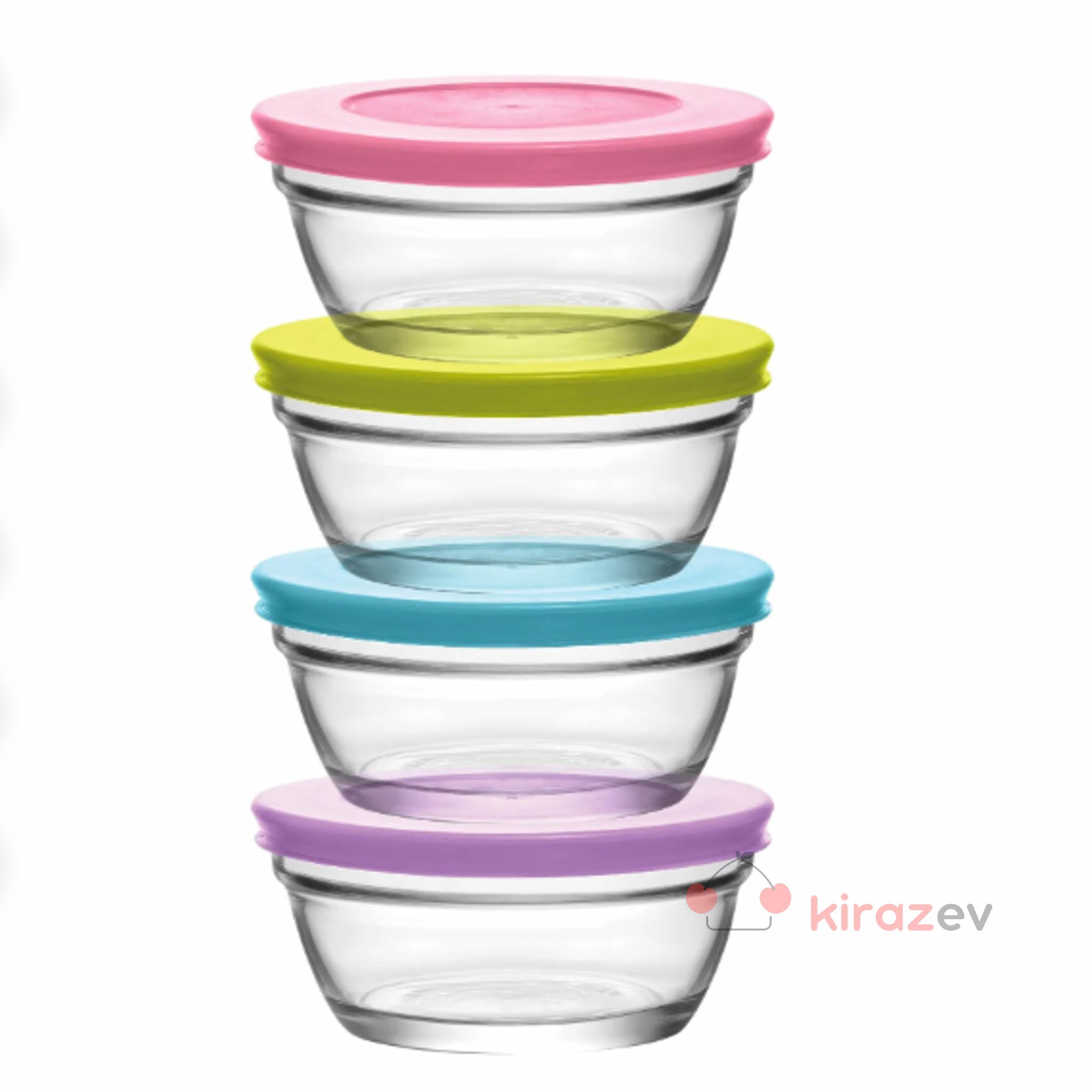 LAV Master 4’lü Renkli Kapaklı Cam Saklama Kabı Seti