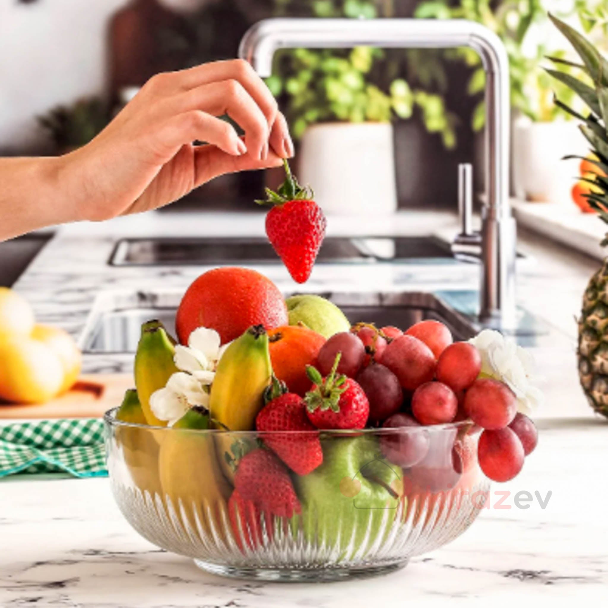Modern ve estetik çizgileriyle öne çıkan LAV Tokyo Cam Salata Kasesi, geniş hacmi ve şık yapısıyla salata, meyve, cips veya sunum kasesi olarak çok yönlü kullanım sunar. Derin formu sayesinde sofralarda hem işlevsel hem de dekoratif bir görünüm oluşturur.
