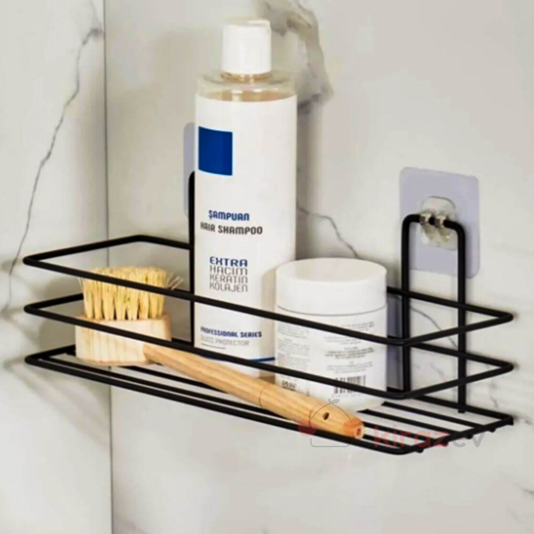Minimal ve güçlü yapısıyla siyah metal yapışkanlı duvar rafı, alan kazandıran pratik bir düzenleme çözümüdür. Üç katlı korumalı formu sayesinde şampuan, sabun, baharat kavanozu veya temizlik ürünlerini güvenle taşır.