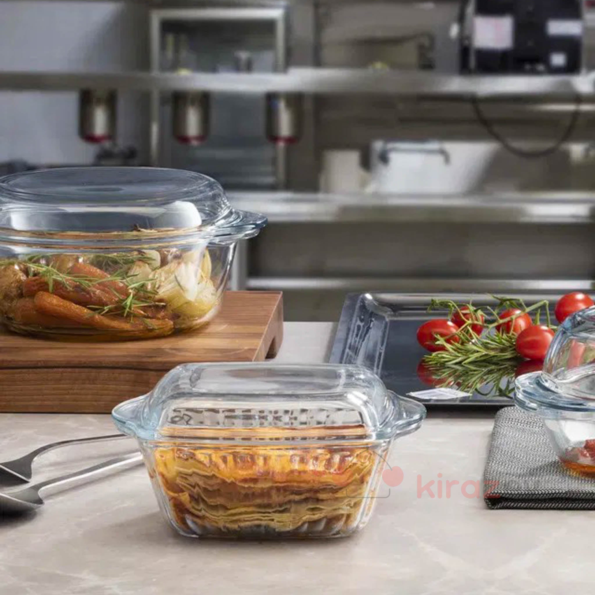 • 1 × Paşabahçe Borcam kapaklı kare tencere (1870 cc taban + cam kapak)