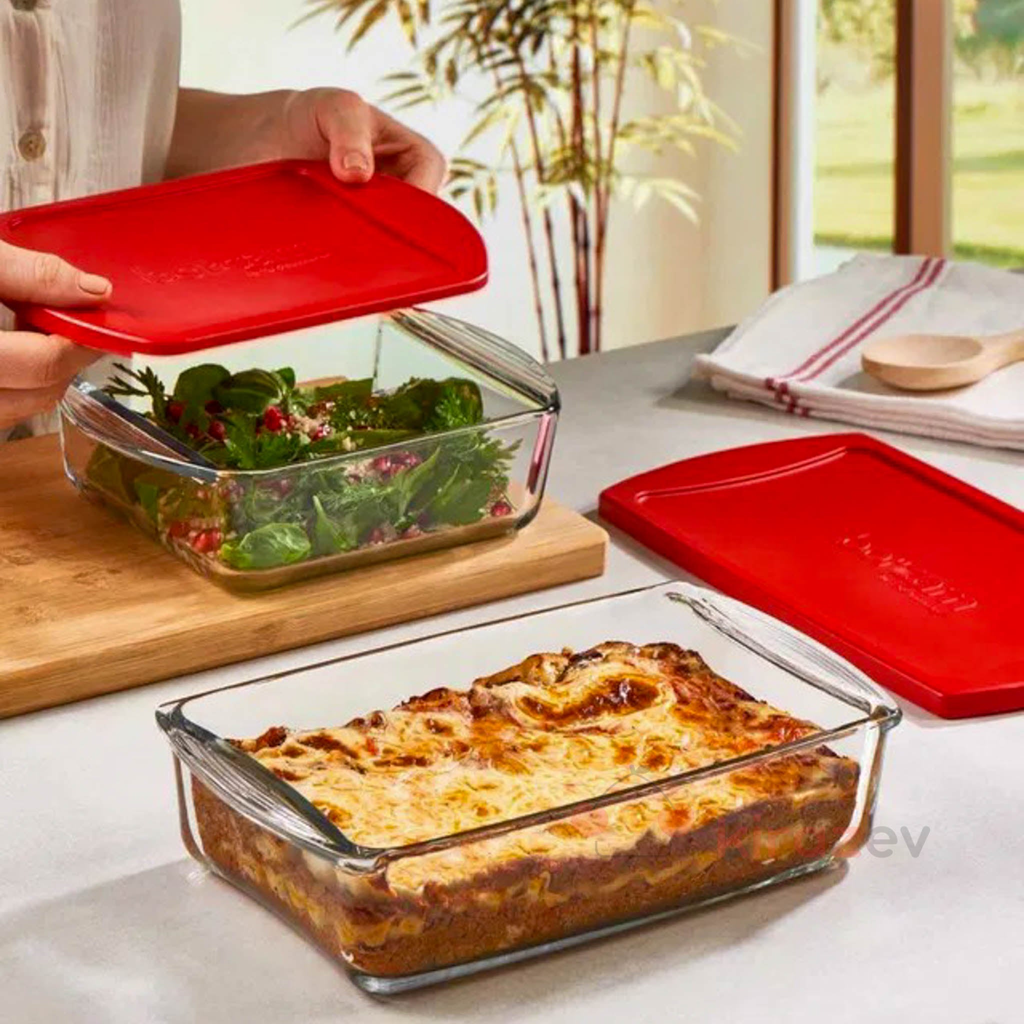 Pratik kullanım sunan Paşabahçe Borcam kapaklı dikdörtgen tepsi, hem pişirme hem saklama için ideal çok yönlü bir üründür. Kırmızı kapak tasarımı sayesinde yiyeceklerinizi güvenle muhafaza etmenizi sağlar.