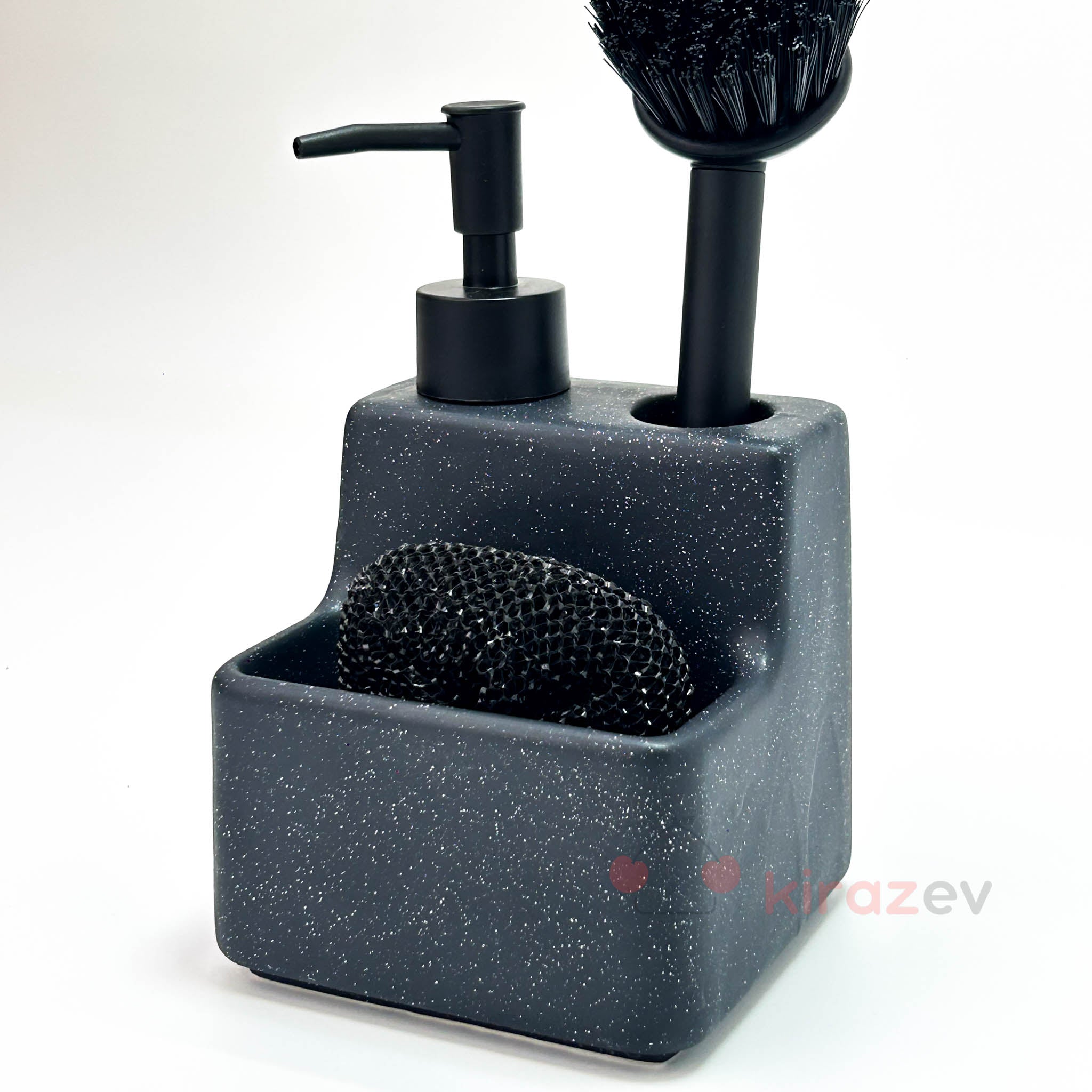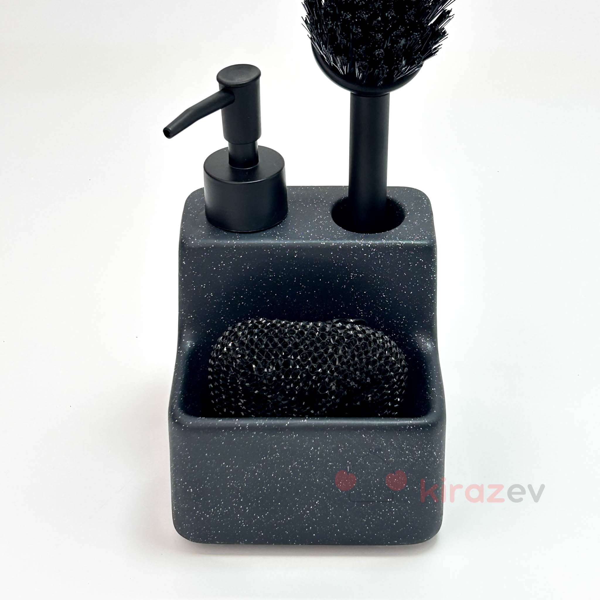 Füme Sıvı Deterjanlık Fırçalı Set, mutfakta temizlik malzemelerini düzenli ve estetik biçimde bir araya getirir. Mat füme renkli modern tasarımıyla hem zarif bir görünüm sunar hem de işlevselliğiyle pratik kullanım sağlar. Sıvı sabunluk, bulaşık fırçası ve sünger bölmesi tek bir üründe birleşir.