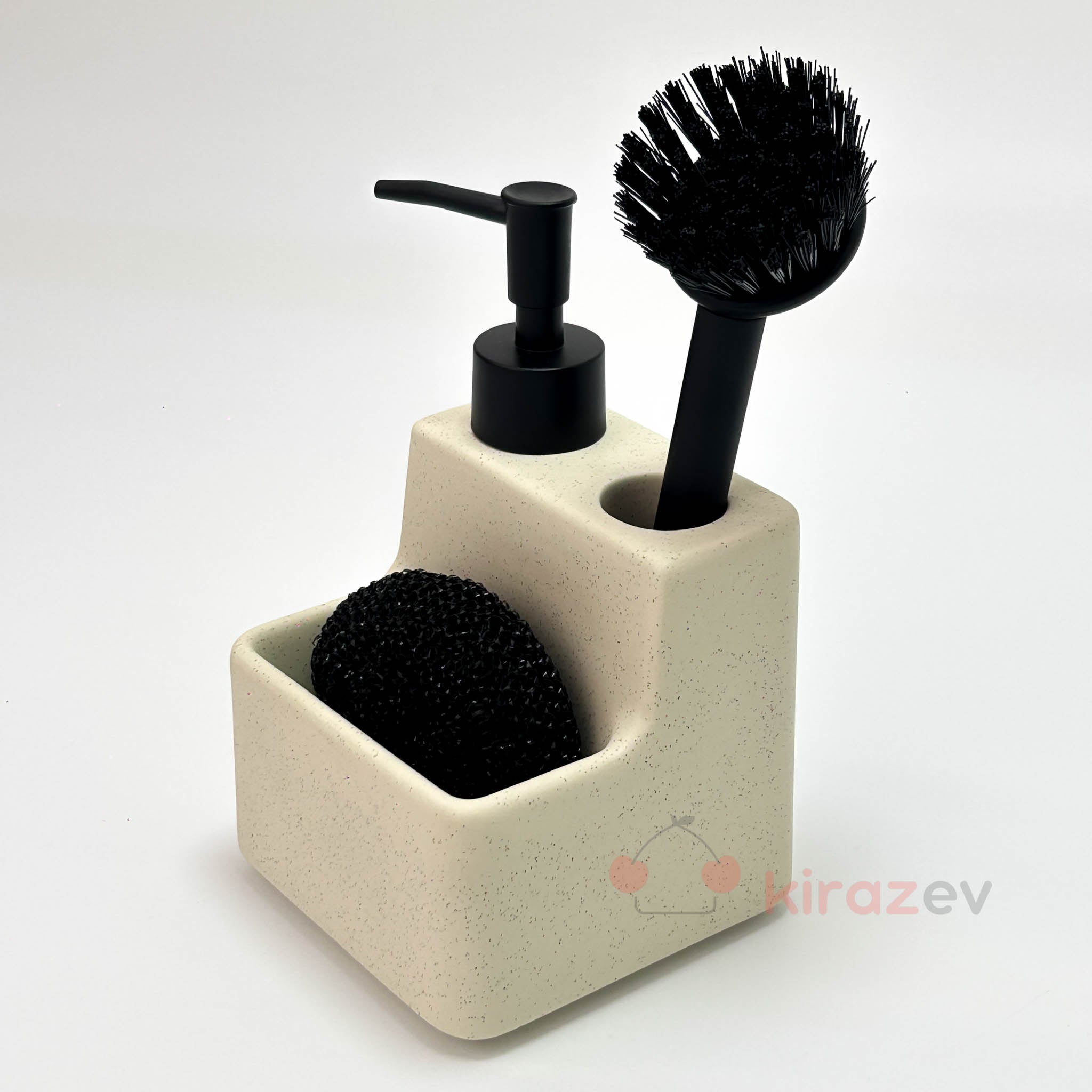 Krem Sıvı Deterjanlık Fırçalı Set, mutfakta temizlik ürünlerini bir arada toplamanın en şık yoludur. Mat krem yüzeyiyle sade ama zarif bir görünüm sunar. Süngerlik, bulaşık fırçası ve pompalı sabunluk tek bir kompakt formda birleşir, mutfak tezgahında hem düzen hem de estetik sağlar.