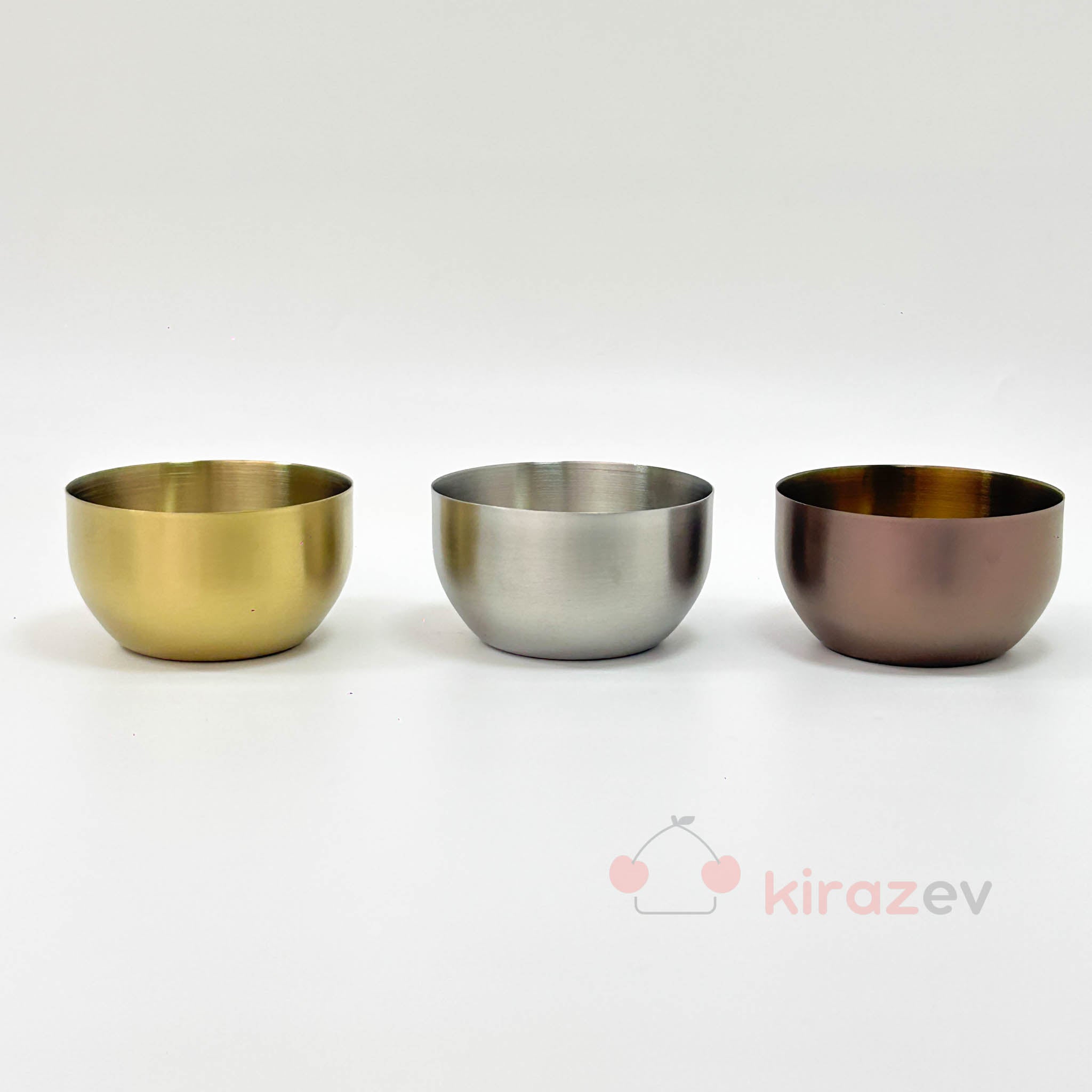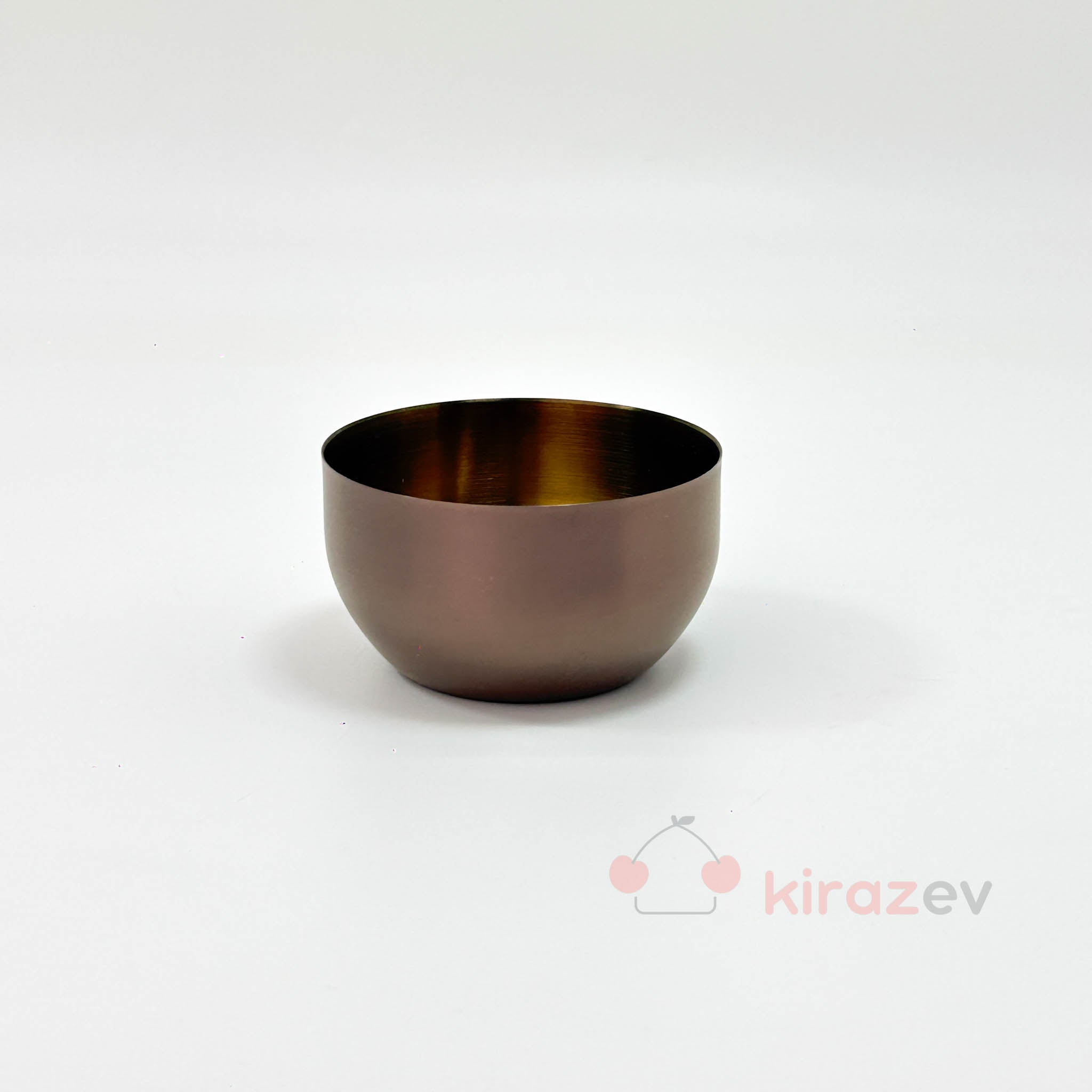 Mat bronz dış yüzeyi ve parlak iç kaplamasıyla bu zarif çelik sunum kasesi, sofralarınıza modern bir dokunuş katar. Hem şık sunumlar hem de dayanıklı kullanım için tasarlanmıştır; meze, sos, atıştırmalık ve tatlı servislerinde mükemmel bir yardımcıdır.