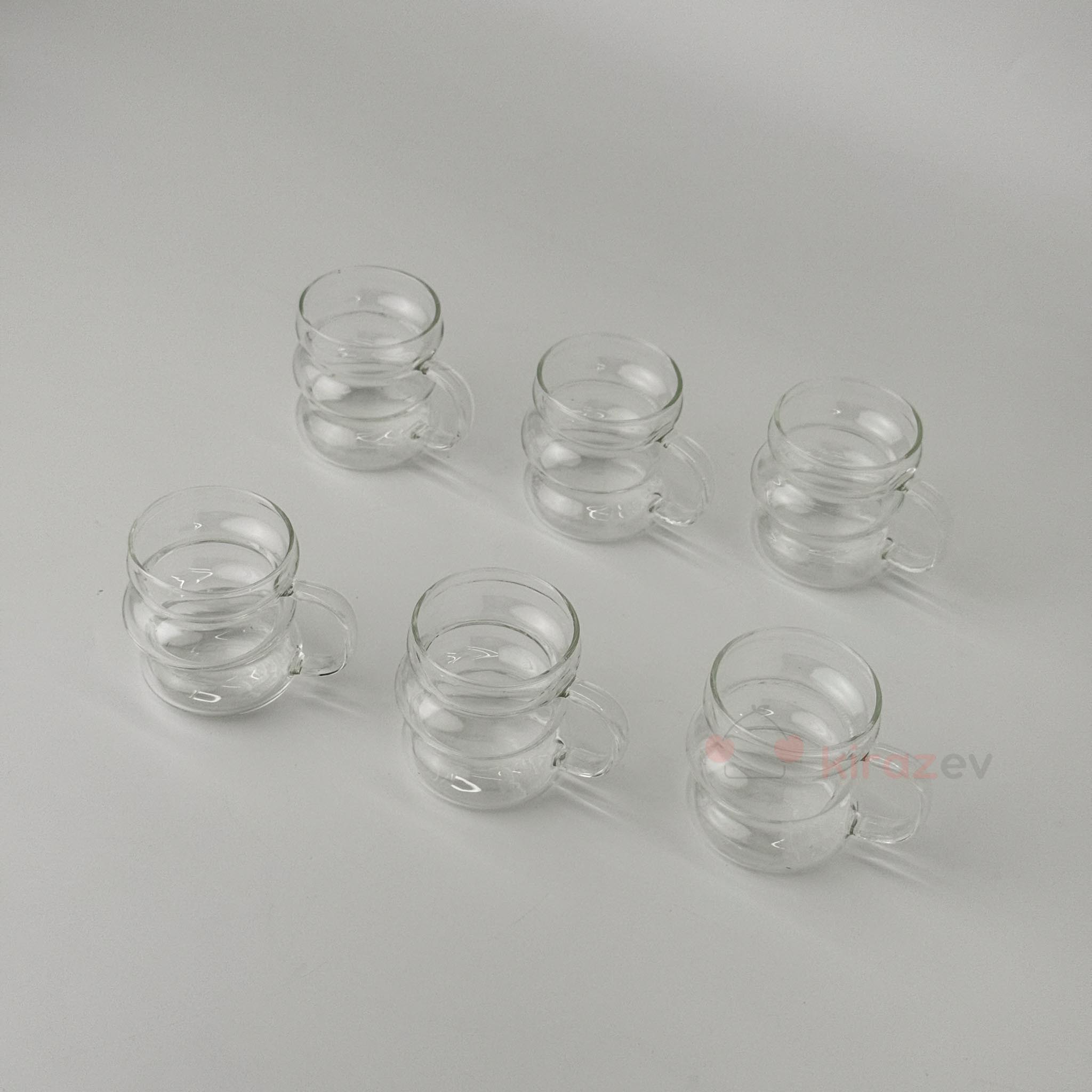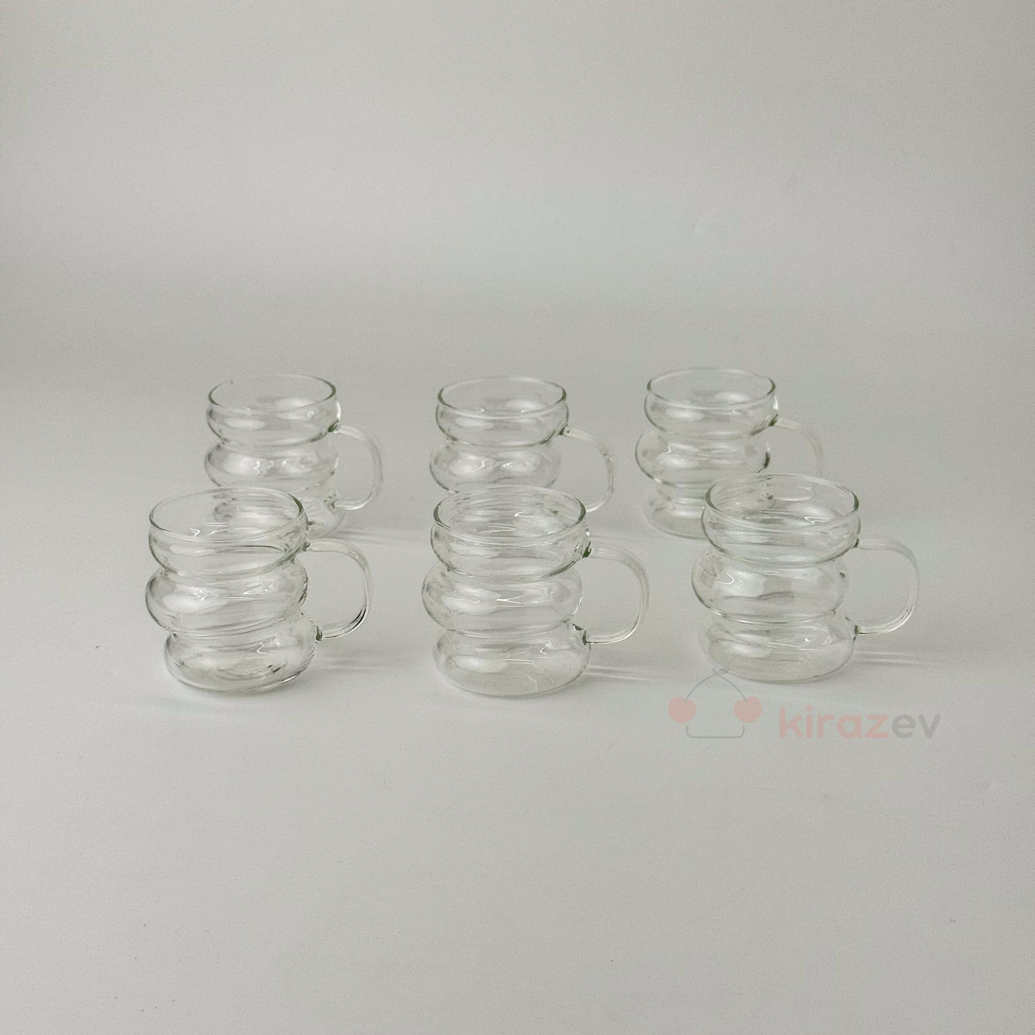 - 6 x Dalgalı Kulplu Cam Kahve Fincanı