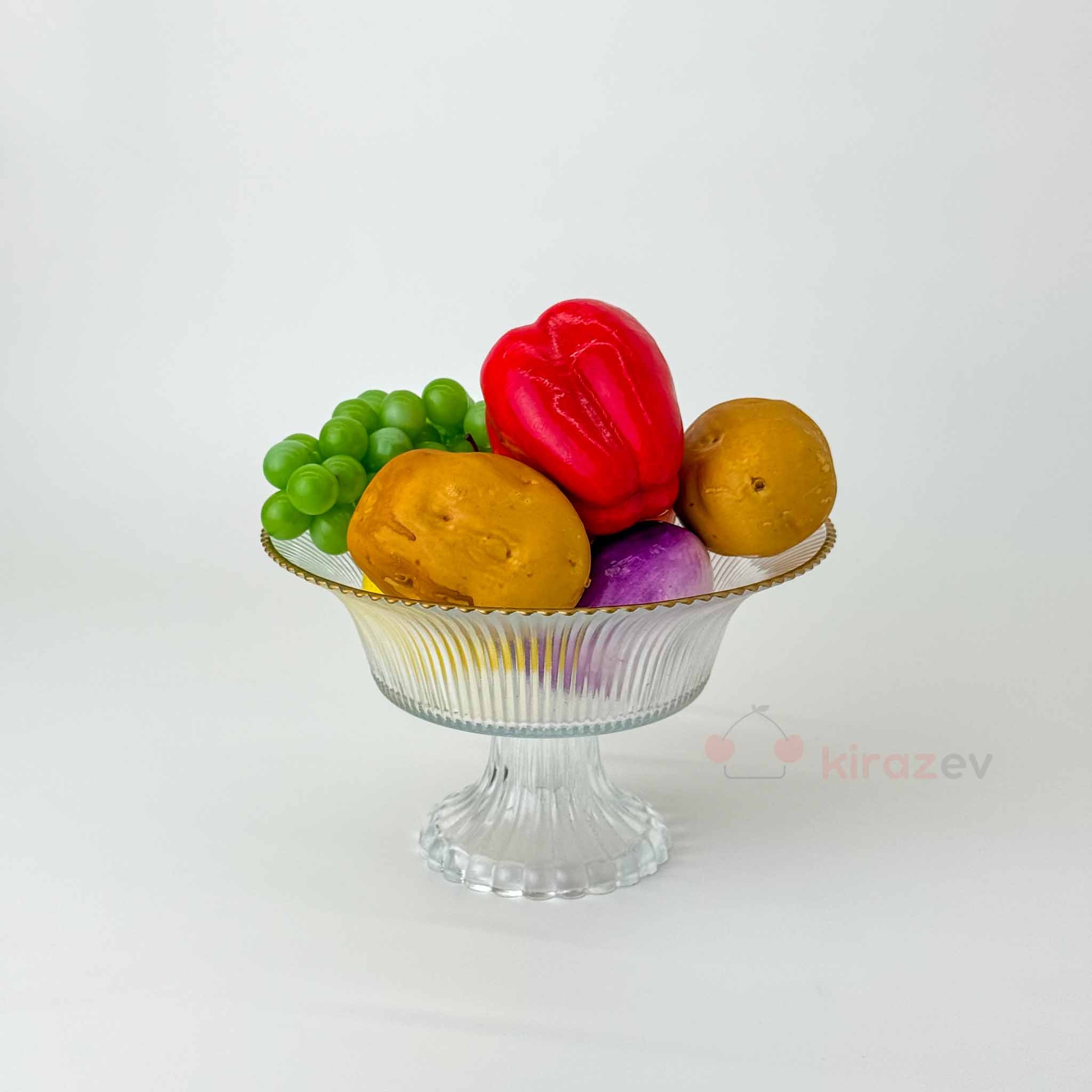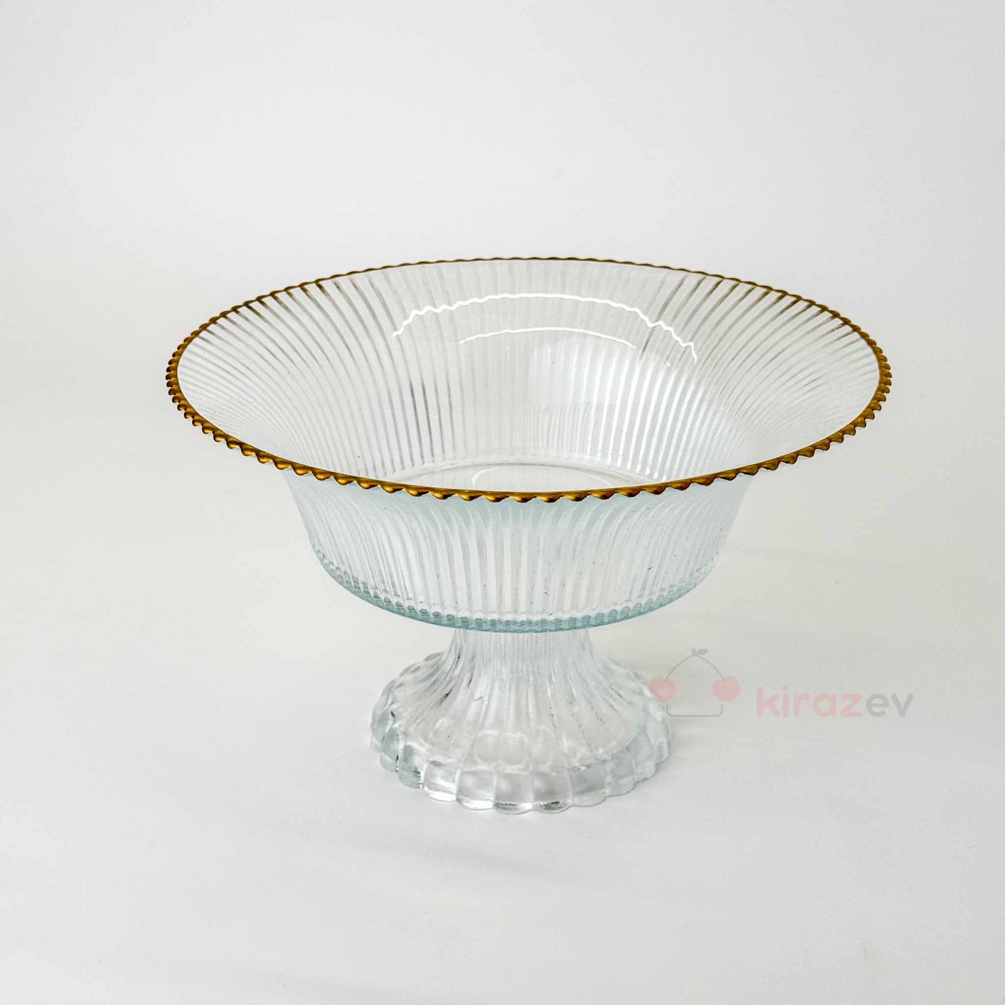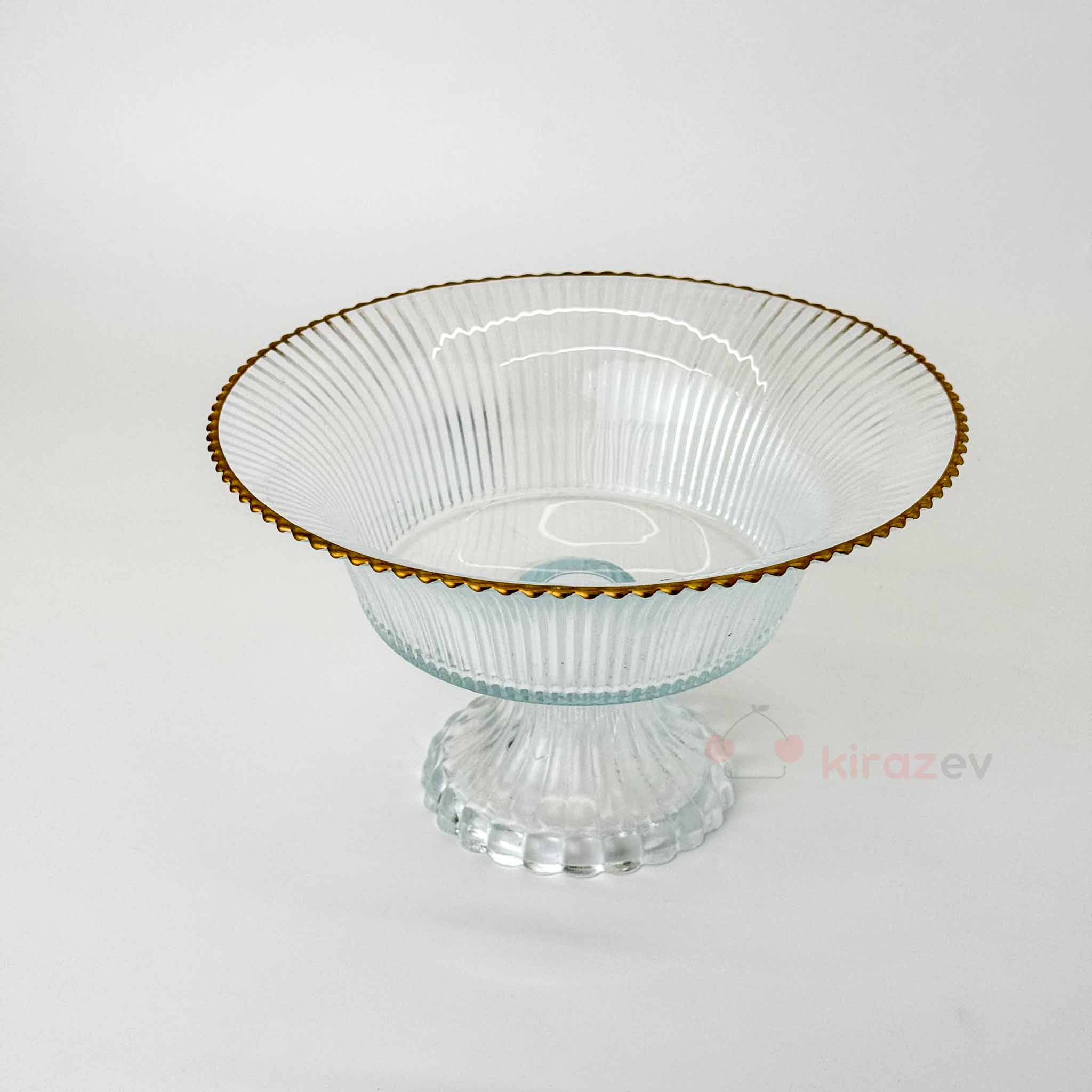 Modern çizgili dokusu ve altın detaylı kenarı ile Rays yaldızlı ayaklı cam kase, sofralarınıza zarafet ve ferahlık getirir.