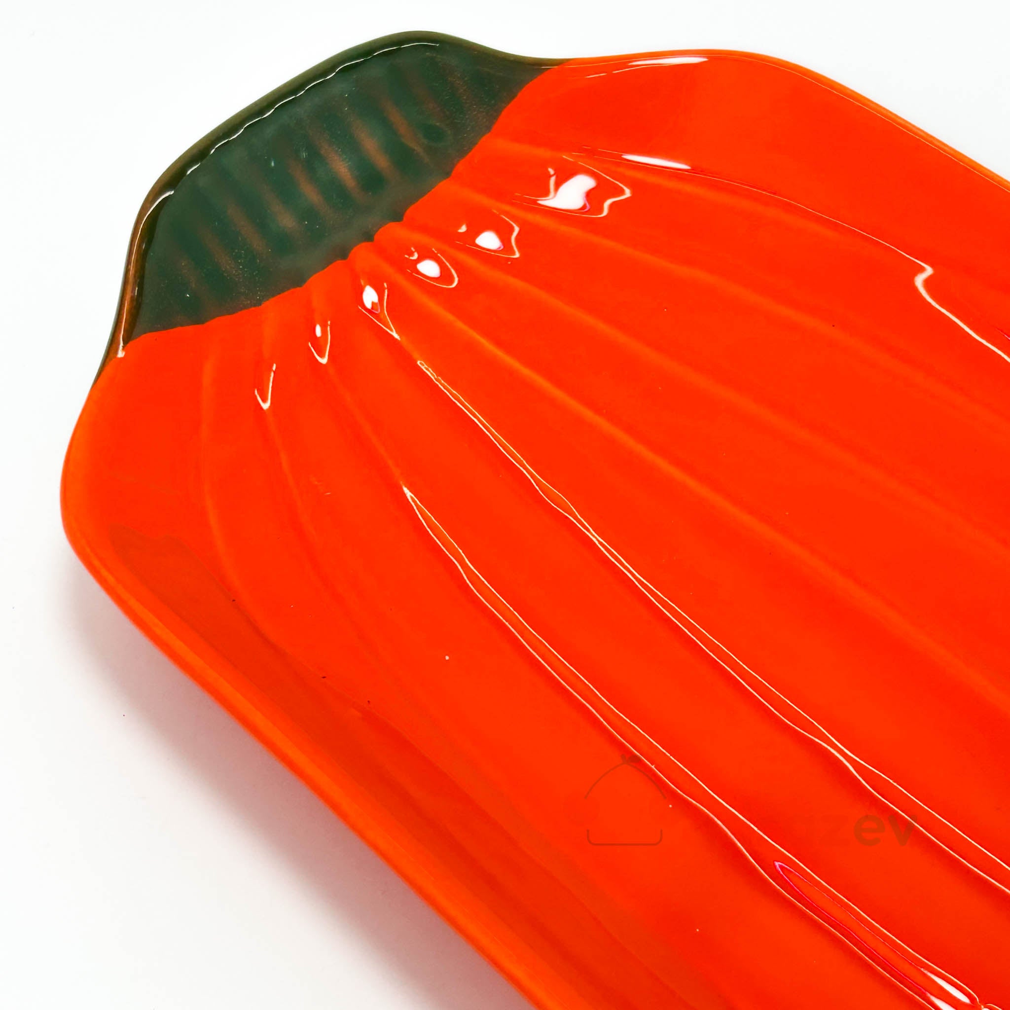 Sofralara eğlenceli ve canlı bir dokunuş katmak isteyenler için tasarlanan kabak formunda seramik sunum tabağı, parlak turuncu rengiyle dikkat çekiyor. Çerez, atıştırmalık, kahvaltılık veya sunumlarda özel bir tamamlayıcı olarak kullanılabilir.