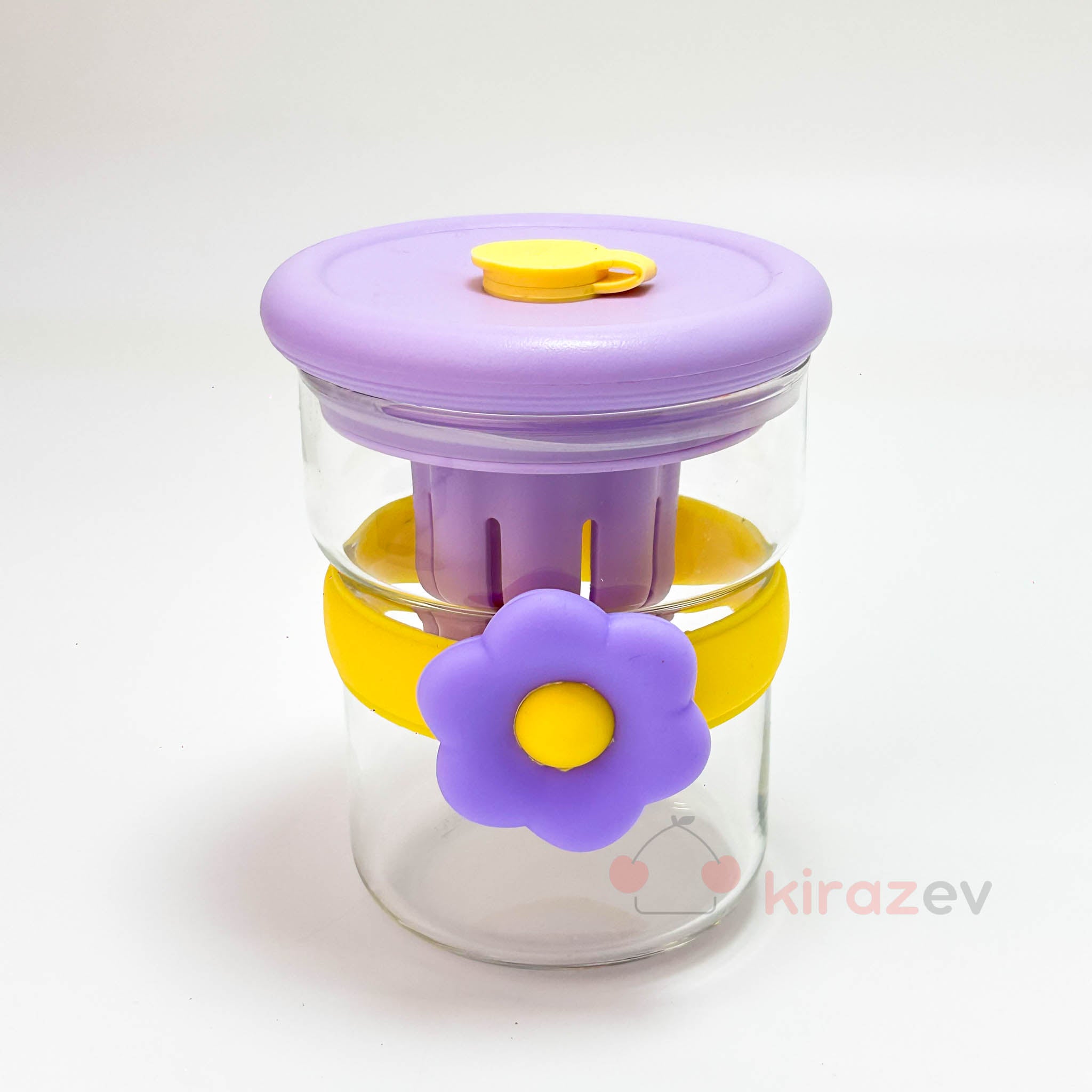 Canlı renkleri ve eğlenceli çiçek süsüyle mor çiçekli pipetli cam muggle suluk, çocuklar için hem güvenli hem de keyifli bir içim deneyimi sunar. Cam gövdesi hijyenik kullanım sağlarken, yumuşak pipeti ve sızdırmaz kapağı günlük kullanımda pratiklik sağlar.