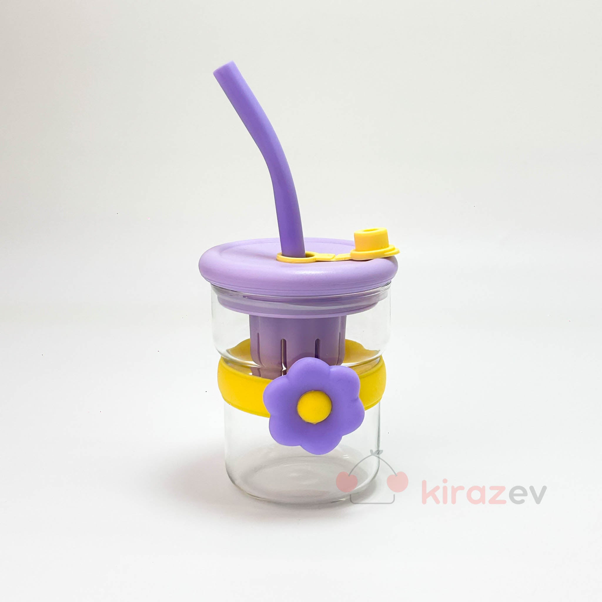 Cam Muggle Suluk – Mor Çiçekli Pipetli