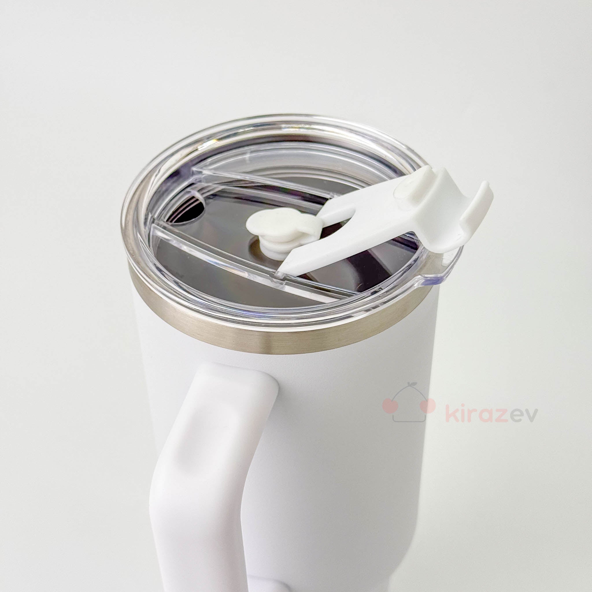 Kulplu Pipetli Paslanmaz Çelik Termos Beyaz