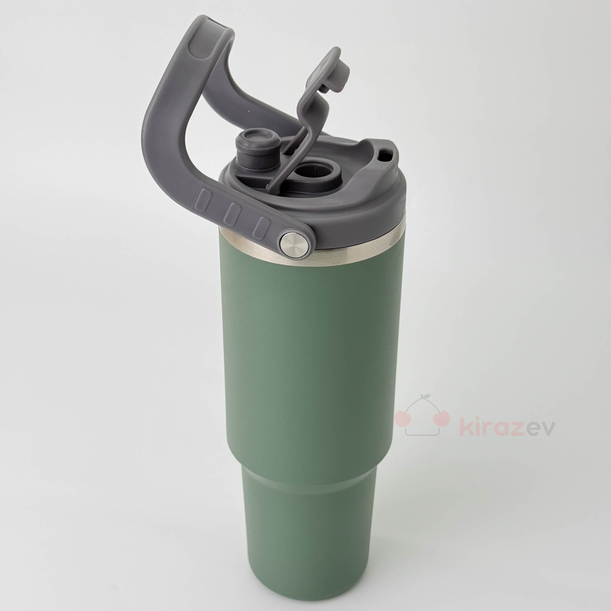 Paslanmaz Tutacaklı Pipetli Çelik Termos Yeşil