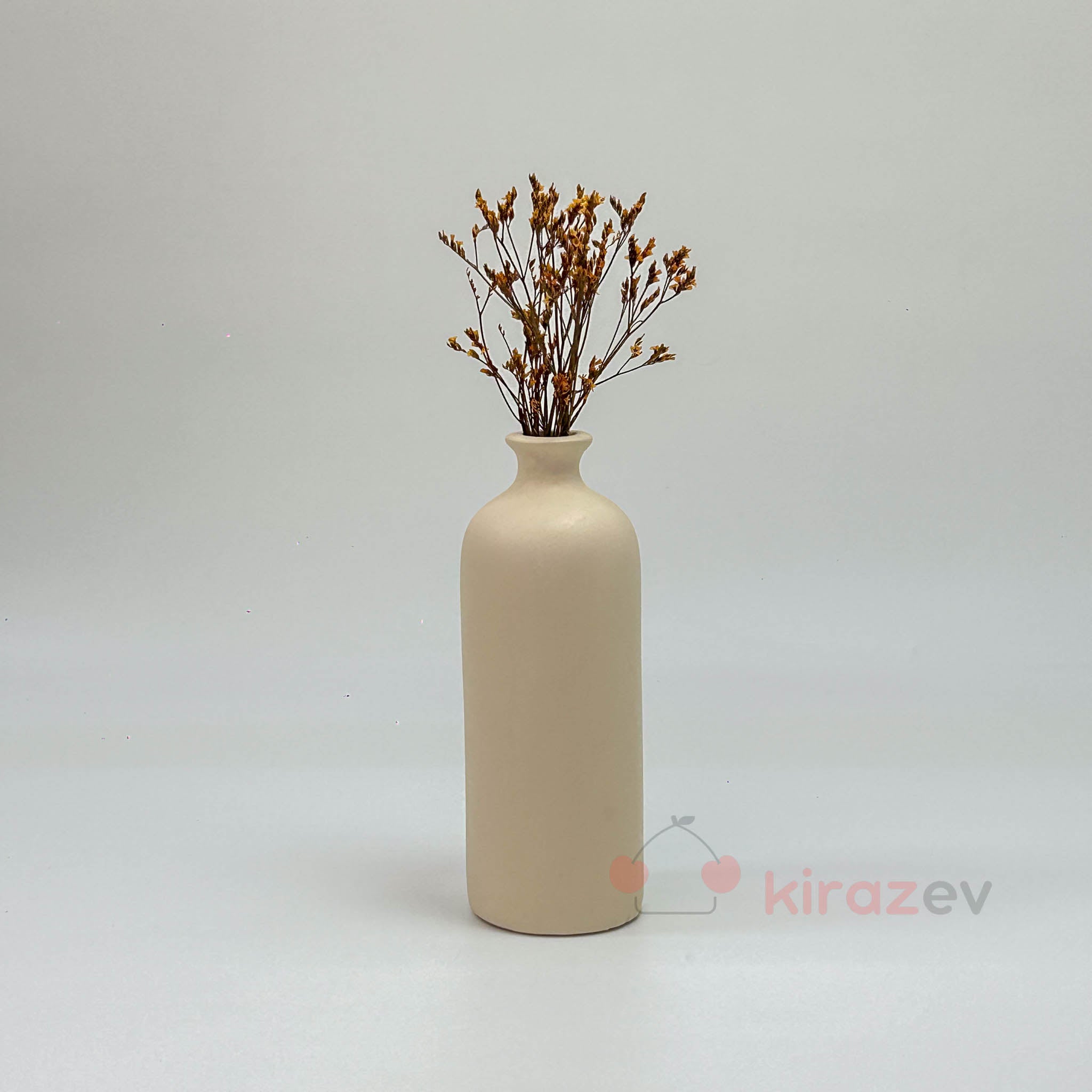 Seramik Vazo Taksim, sade çizgileri ve mat krem rengiyle zamansız bir estetik sunar. Modern ve rustik dekorasyon tarzlarına uyum sağlayan bu uzun formdaki vazo, kuru çiçekler, pampas otları veya dekoratif dallarla mükemmel bir uyum yakalar.