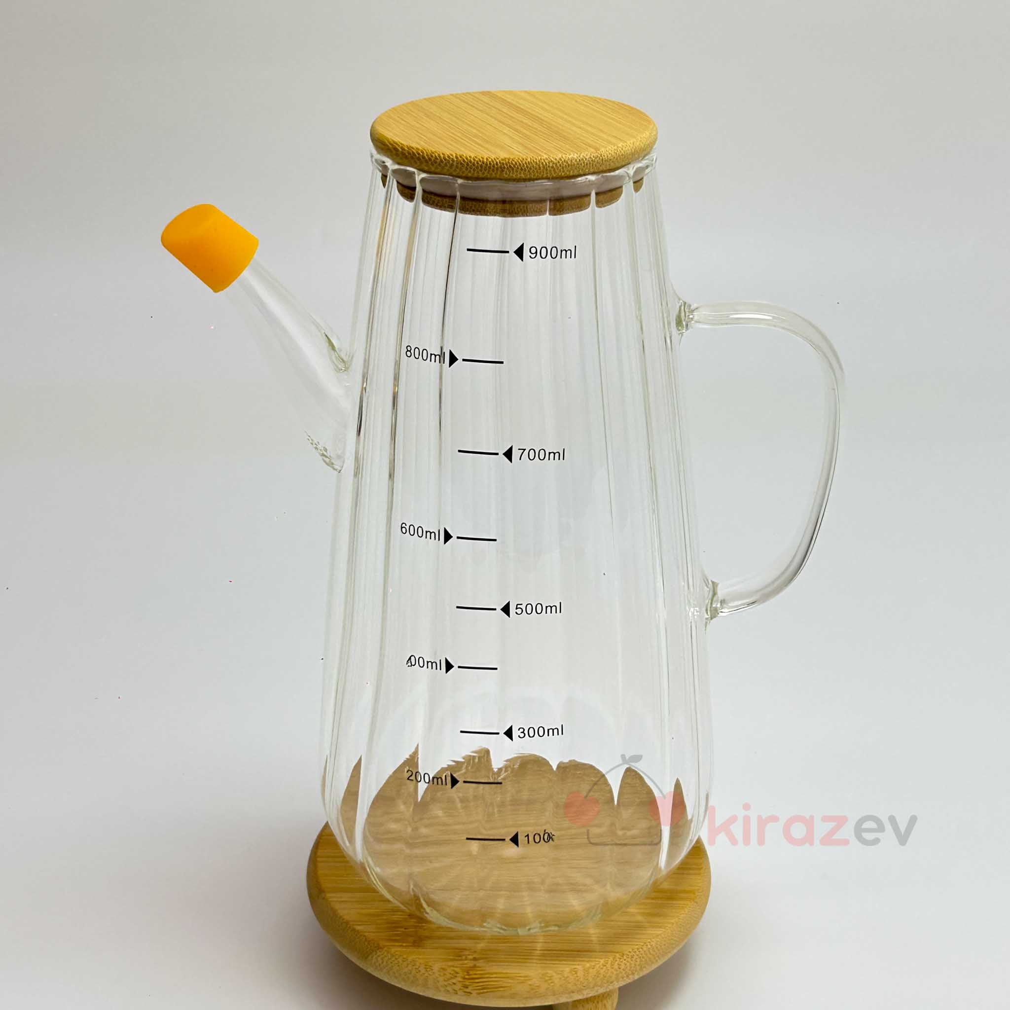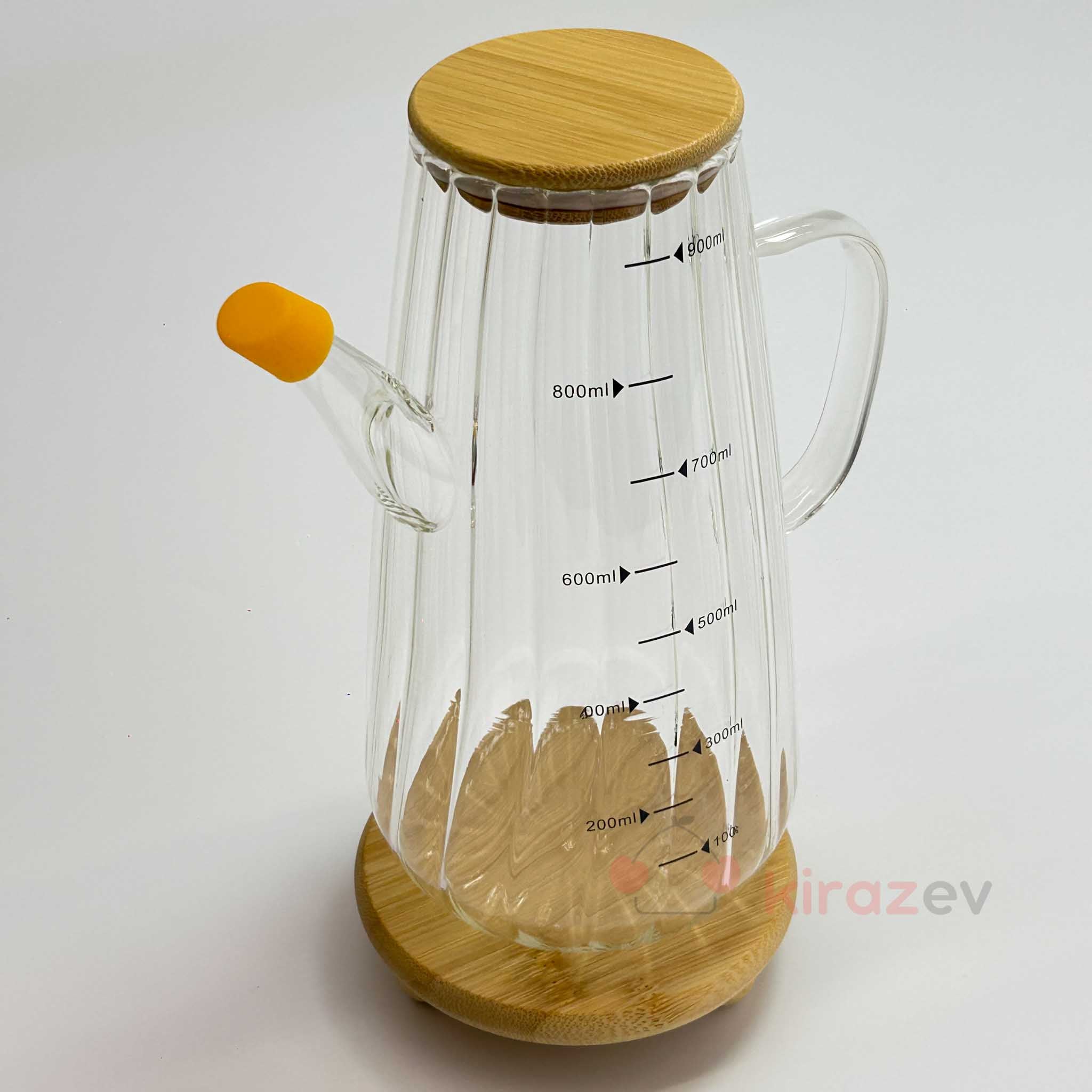 Flora Orange Cam Yağdanlık 900 ml – Bambu Kapaklı