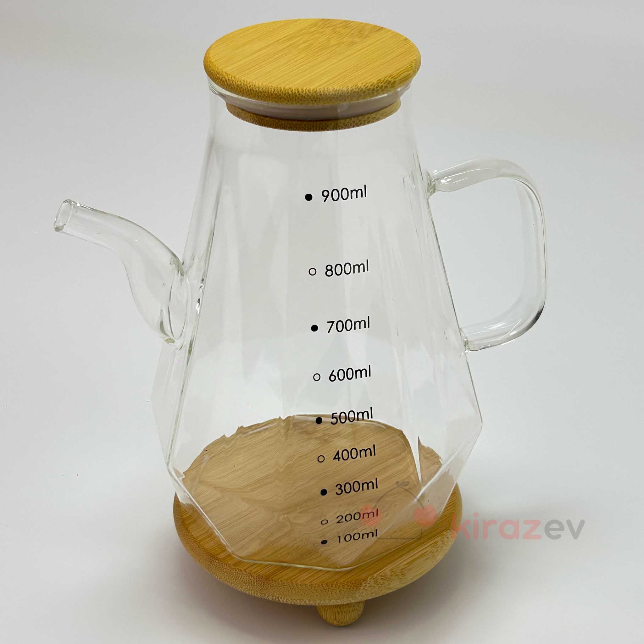 Vento Konik Cam Yağdanlık 900 ml – Bambu Kapaklı