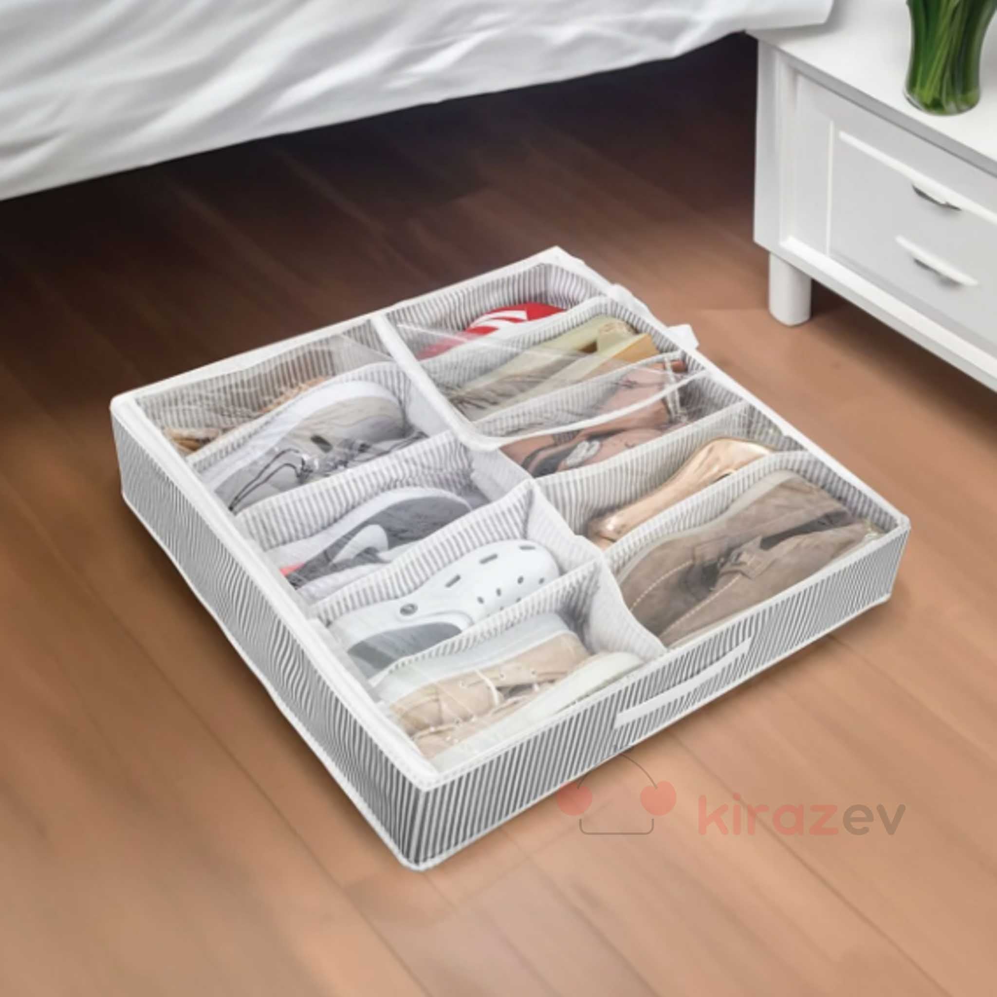 Ayakkabılarınızı dağınıklıktan kurtarın! 10 gözlü ayakkabı düzenleyici, geniş iç hacmi ve şeffaf kapaklı tasarımıyla hem düzenli hem korunaklı bir saklama alanı sunar. Yatak altına, dolap içine veya raf üstüne kolayca yerleştirilir, katlanabilir formuyla pratik bir kullanım sağlar.