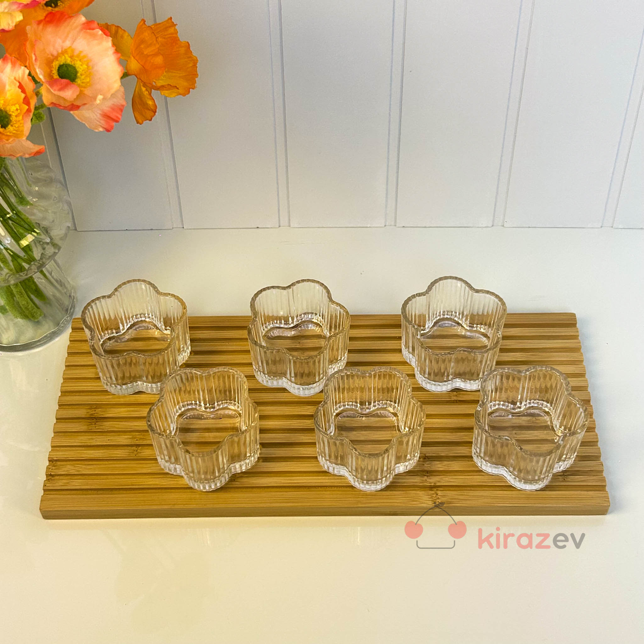 - 6 × Çiçek desenli cam çerezlik / sosluk