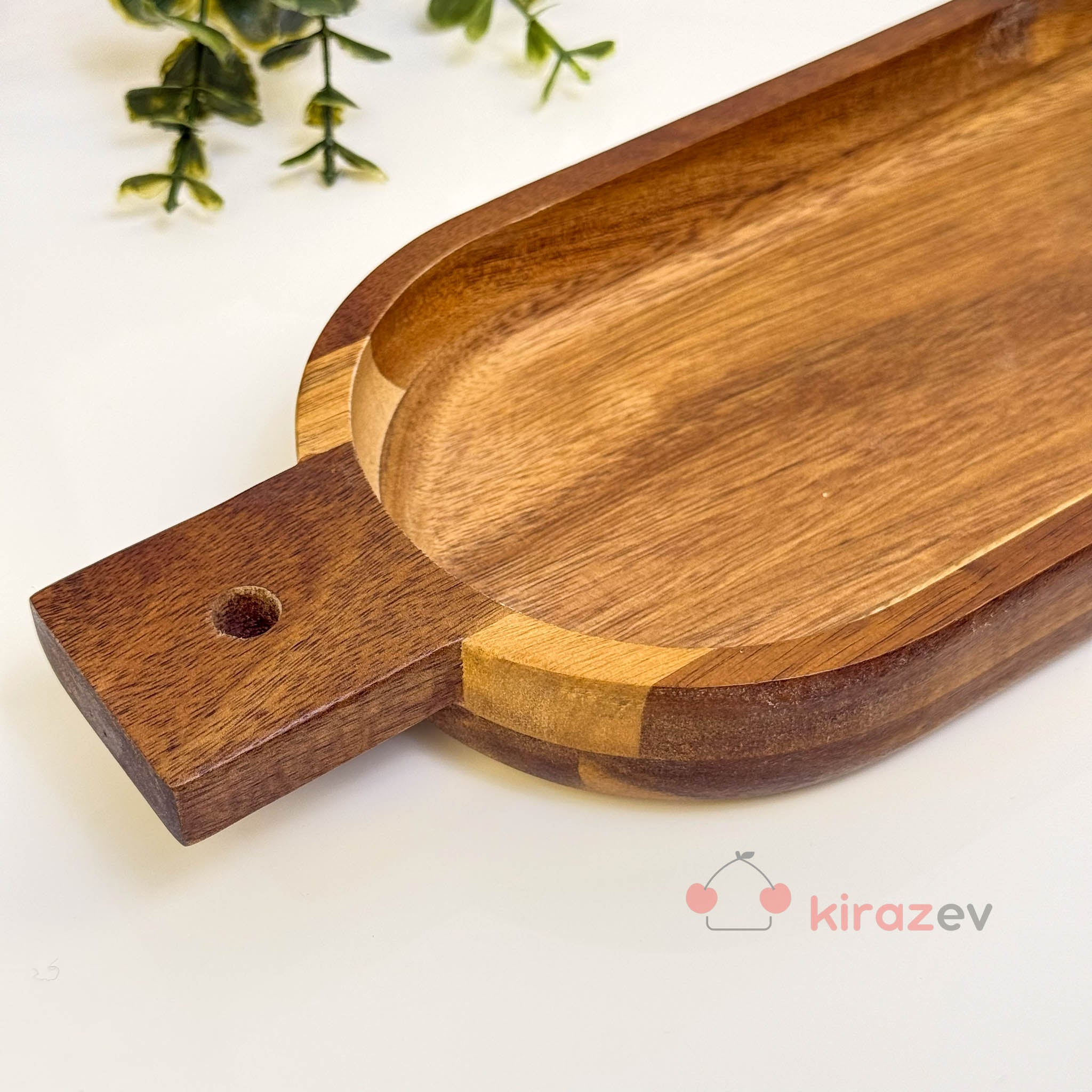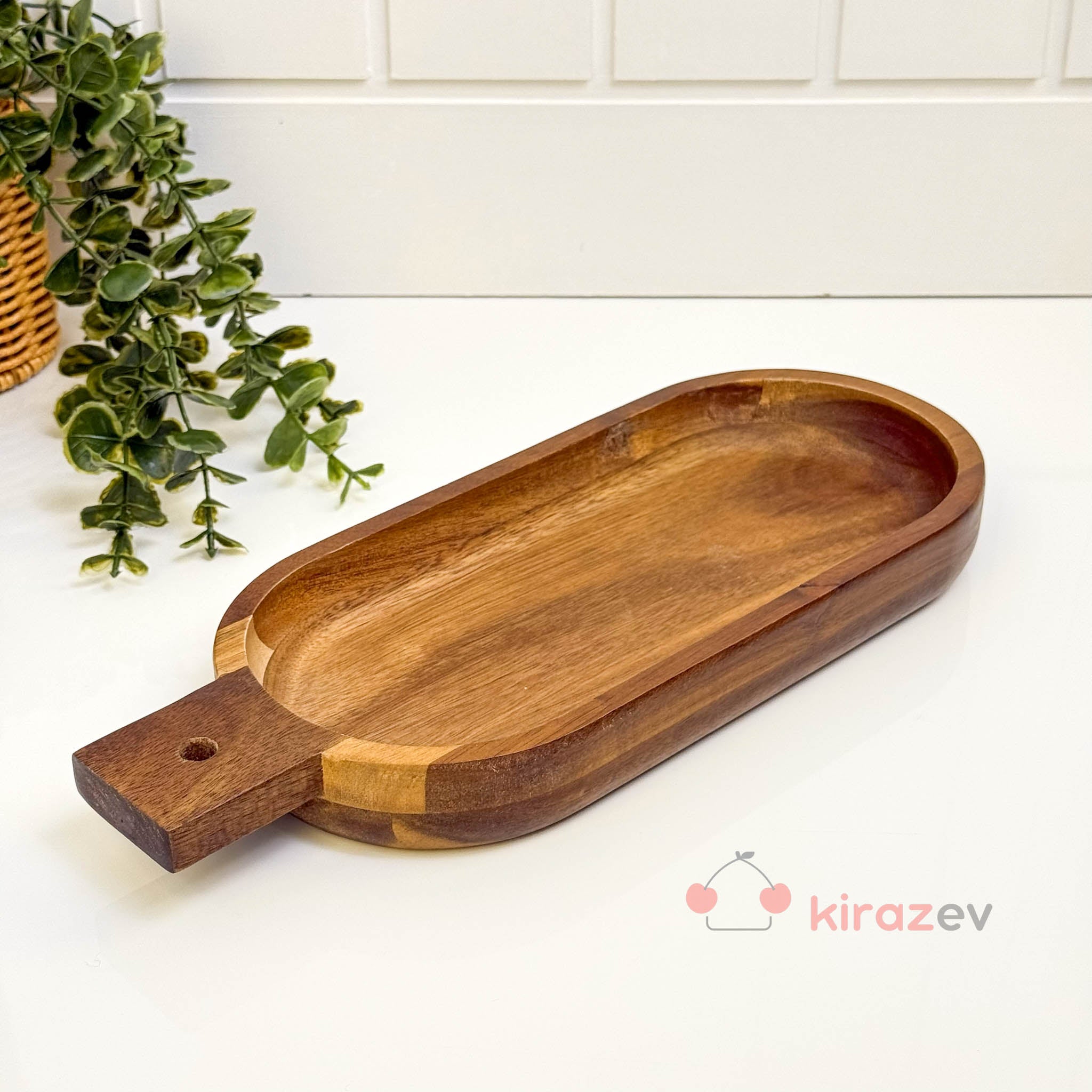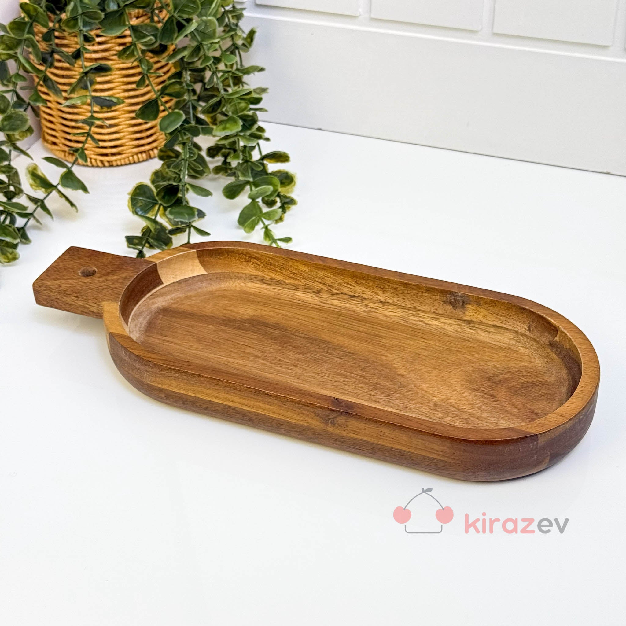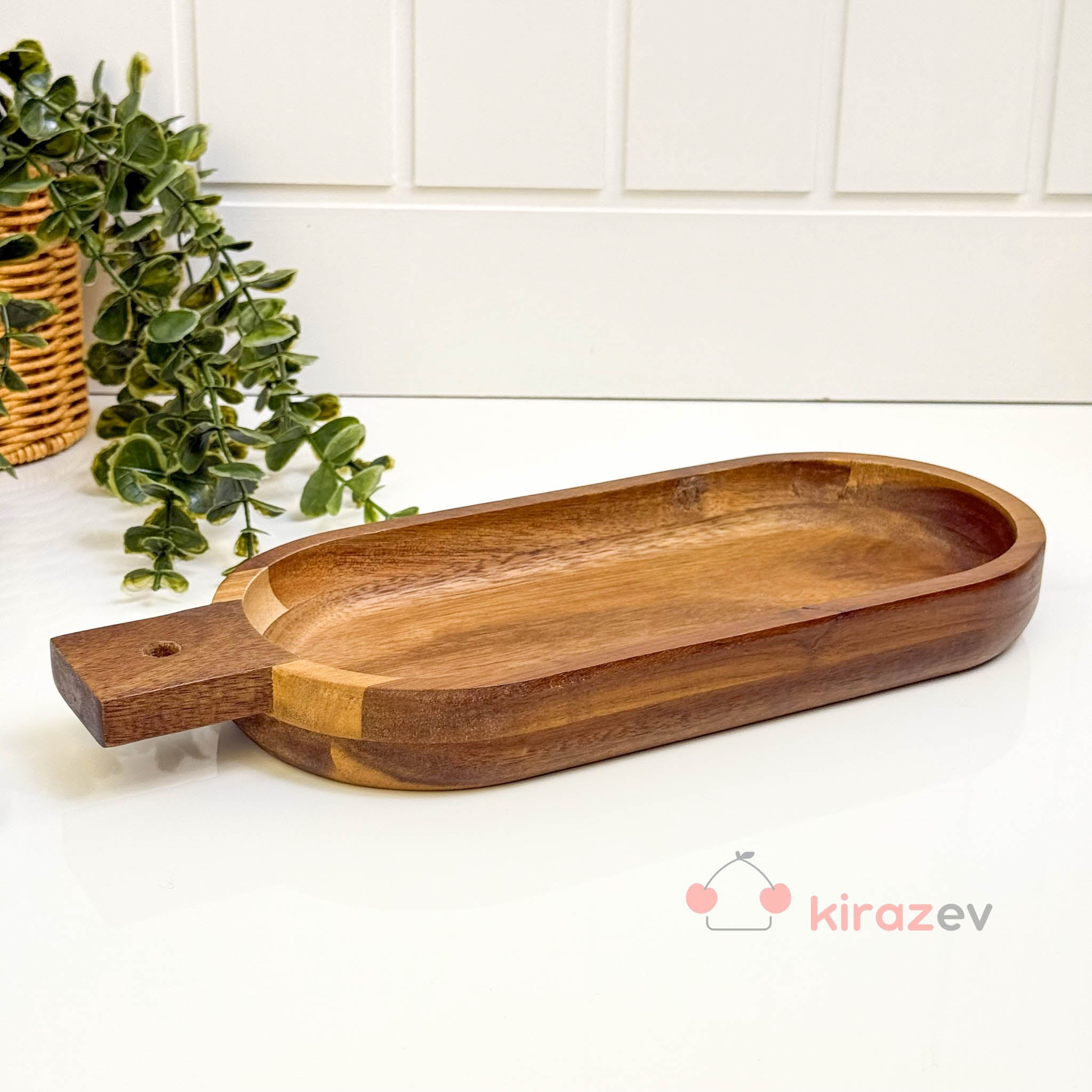 Akasya Kulplu Derin Sunumluk | Doğal Ahşap Servis Tabağı