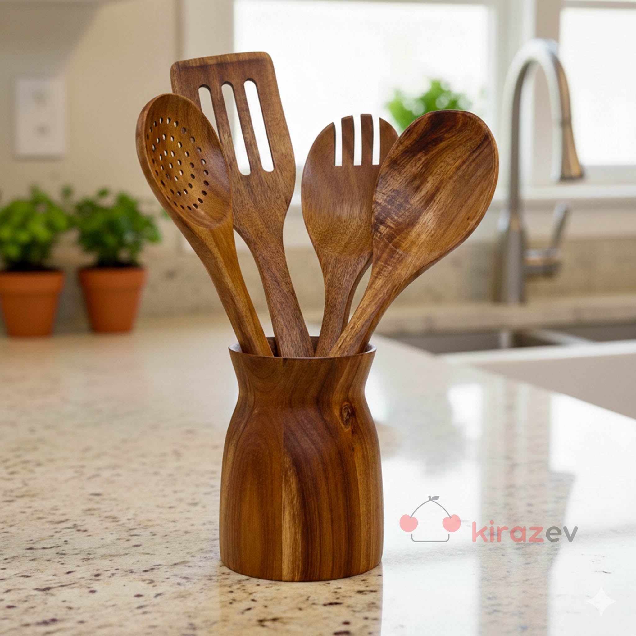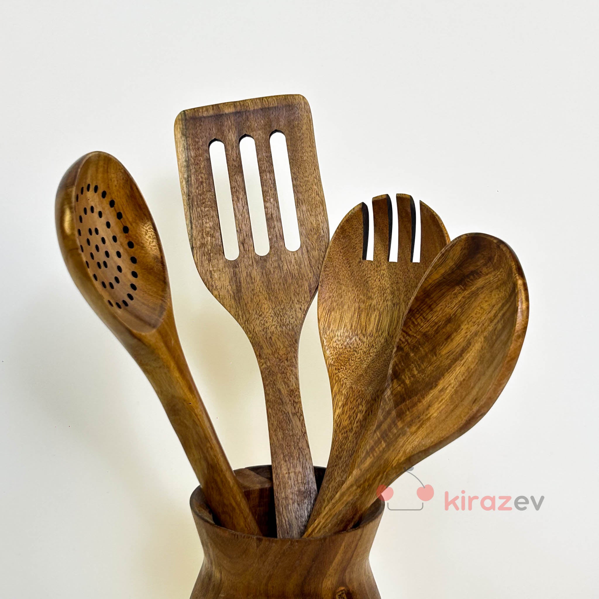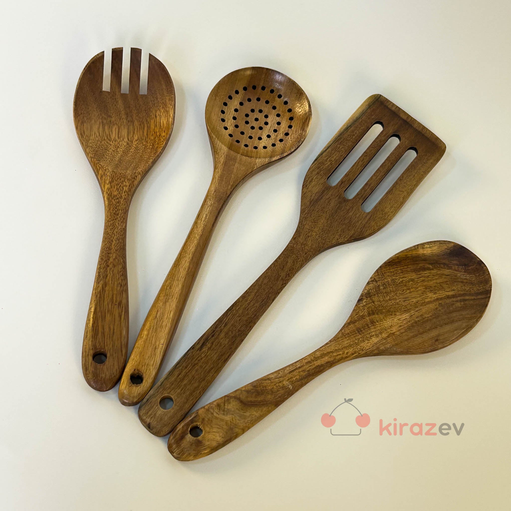 Doğal akasya ağacından üretilmiş bu 4 parçalı servis takımı, mutfakta hem estetik hem de işlevsel bir kullanım sunar. Sağlam yapısı ve doğal dokusuyla günlük pişirme ve servis işlemleri için idealdir.