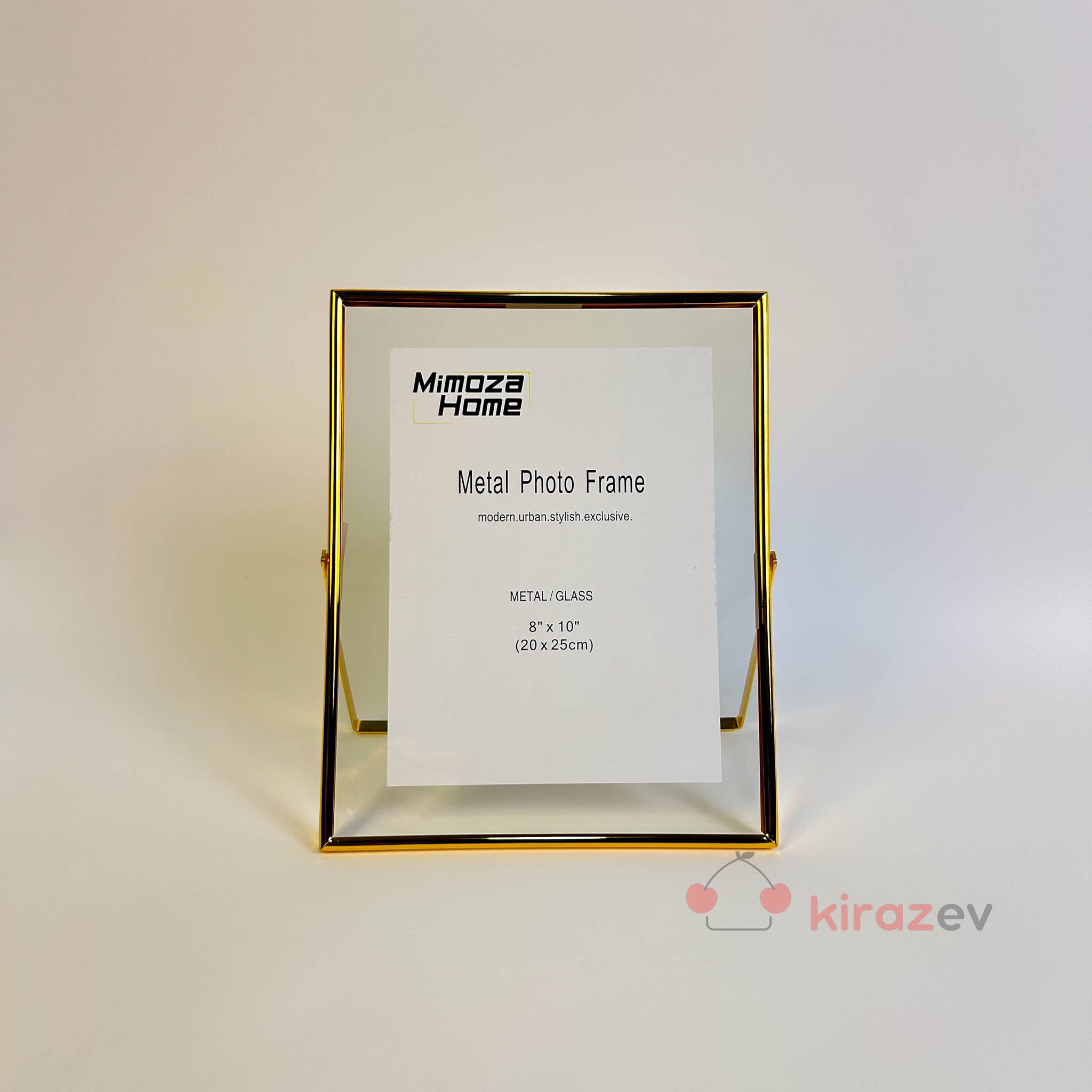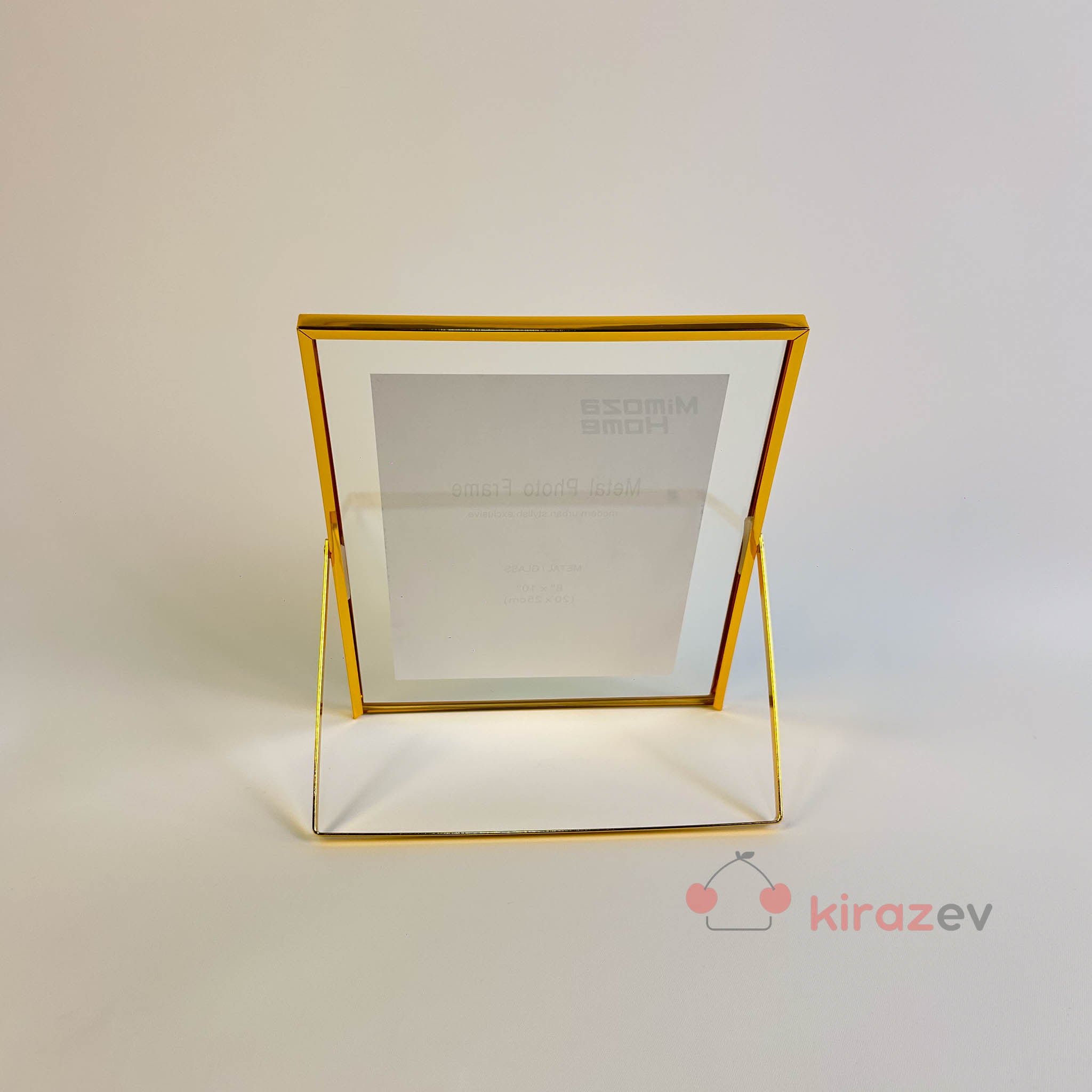 Büyük boy fotoğraflarınızı zarif bir şekilde sergilemenizi sağlayan altın tonlu metal çerçeve, modern ve minimal tasarımıyla yaşam alanlarına şıklık katar. Salon, ofis, konsol ve kitaplık dekorasyonunda estetik bir tamamlayıcıdır.