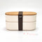 Hem estetik hem de pratik kullanım sunan bambu kapaklı ikili saklama kabı, kalitesiyle mutfağınıza modern bir görünüm kazandırır. Üst üste kilitlenebilir yapısı ve güvenli taşıma bandı sayesinde yemeklerinizi yanınızda taşımayı kolaylaştırır.