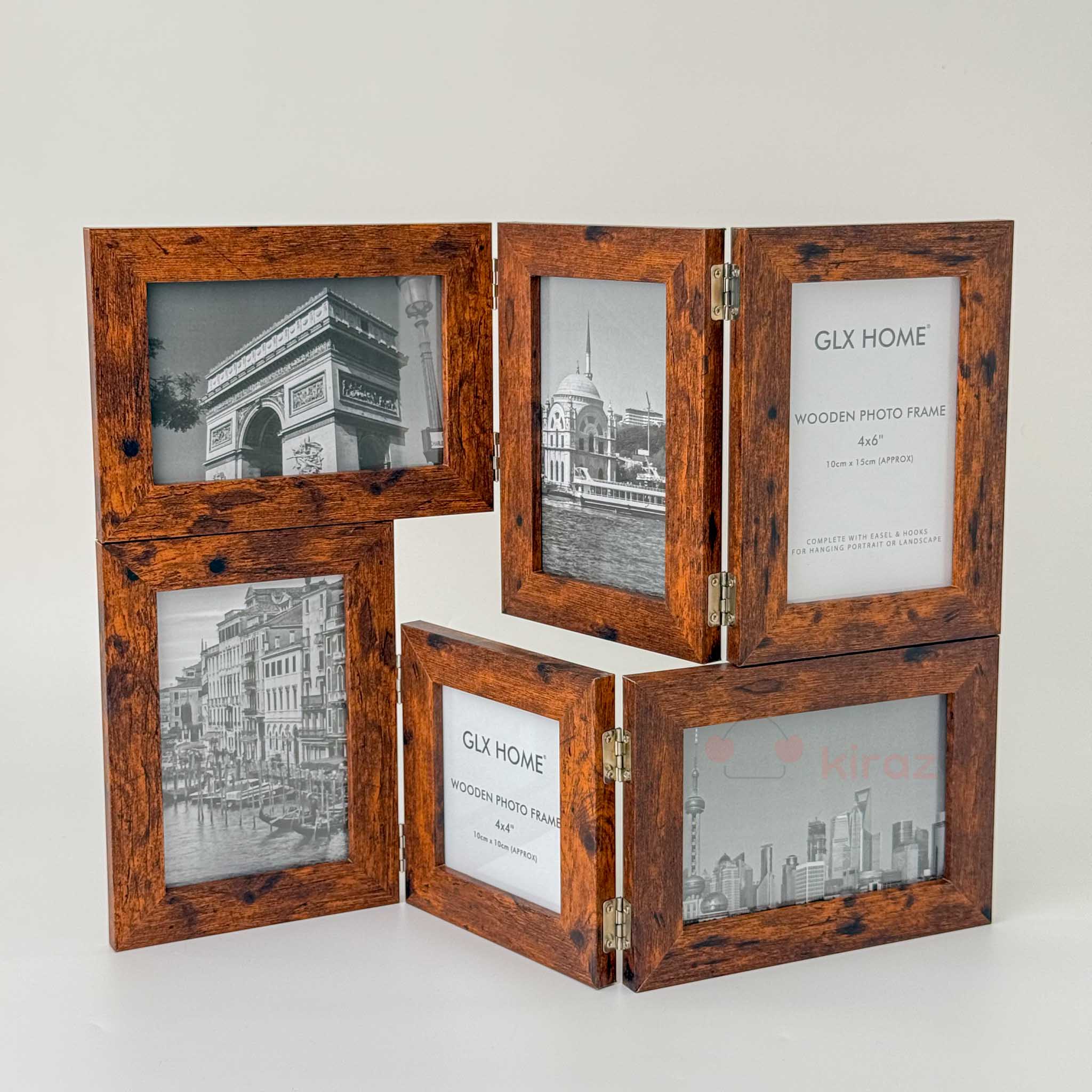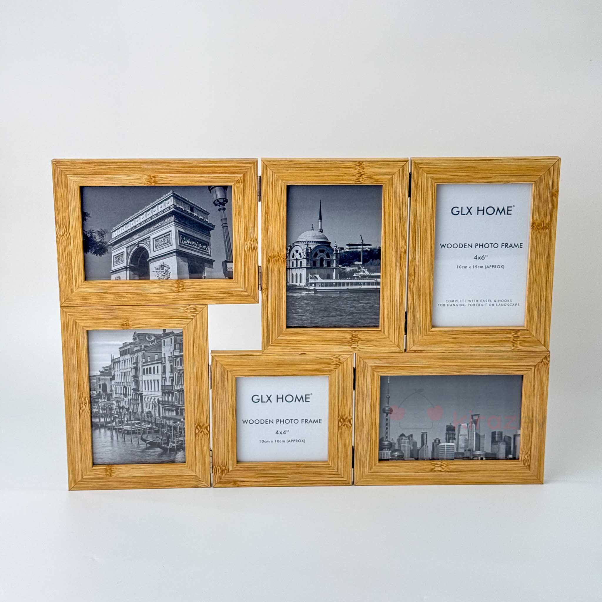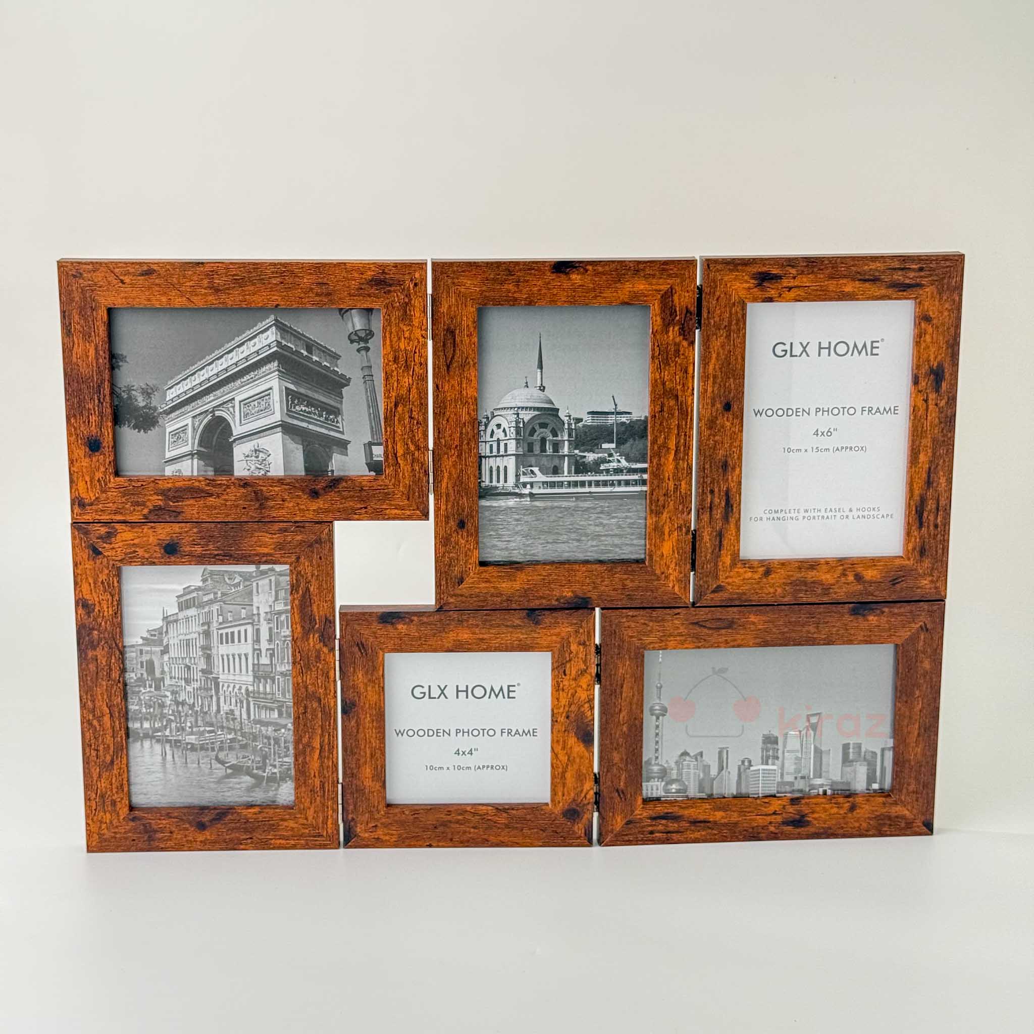 Galaxy serisinin bu 6’lı ahşap fotoğraf çerçevesi, farklı dekorasyon stillerine hitap eden üç renk seçeneğiyle sunuluyor: Bambu naturel, Retro kahverengi ve Beyaz mermer desen. Katlanabilir yapısı ve çoklu yerleşimi ile hem pratik hem dekoratif bir çözüm sunar.
