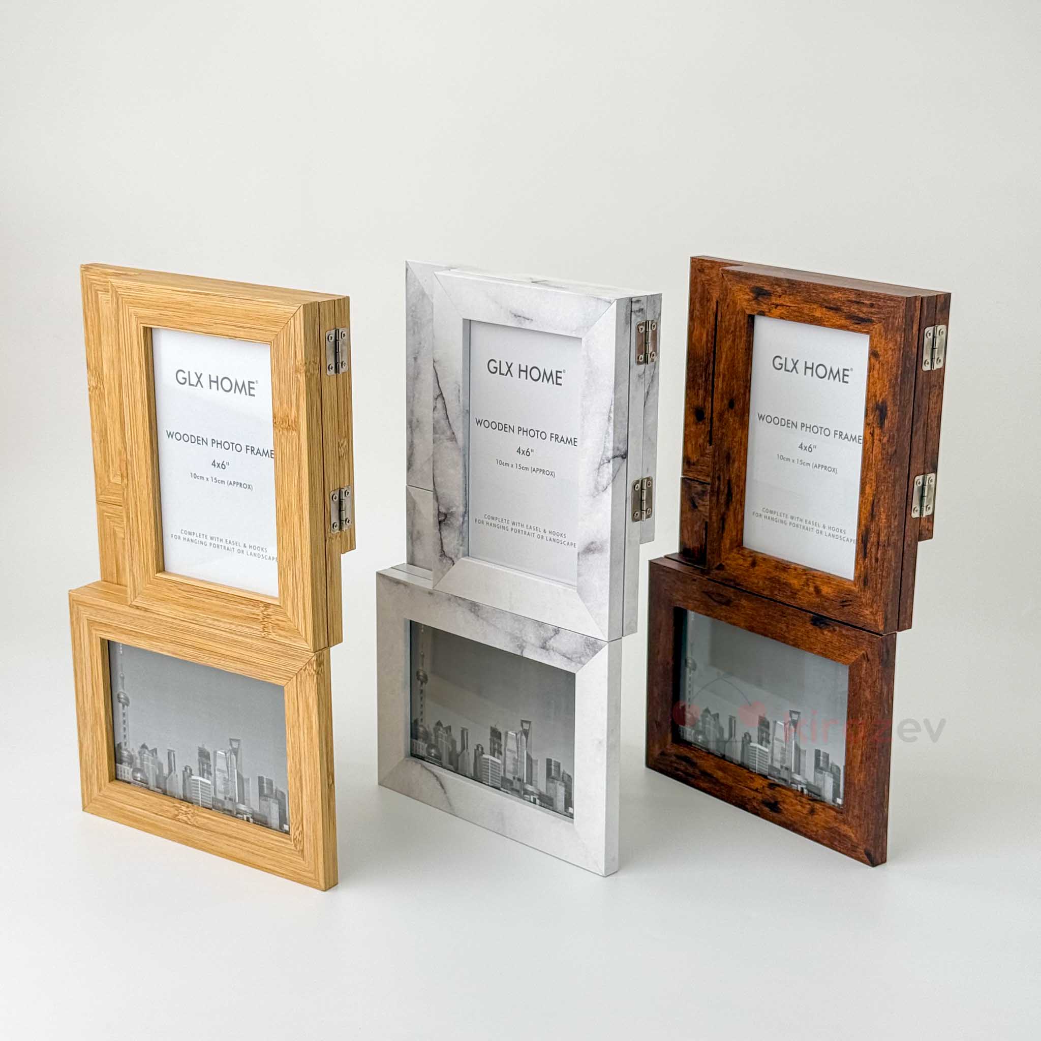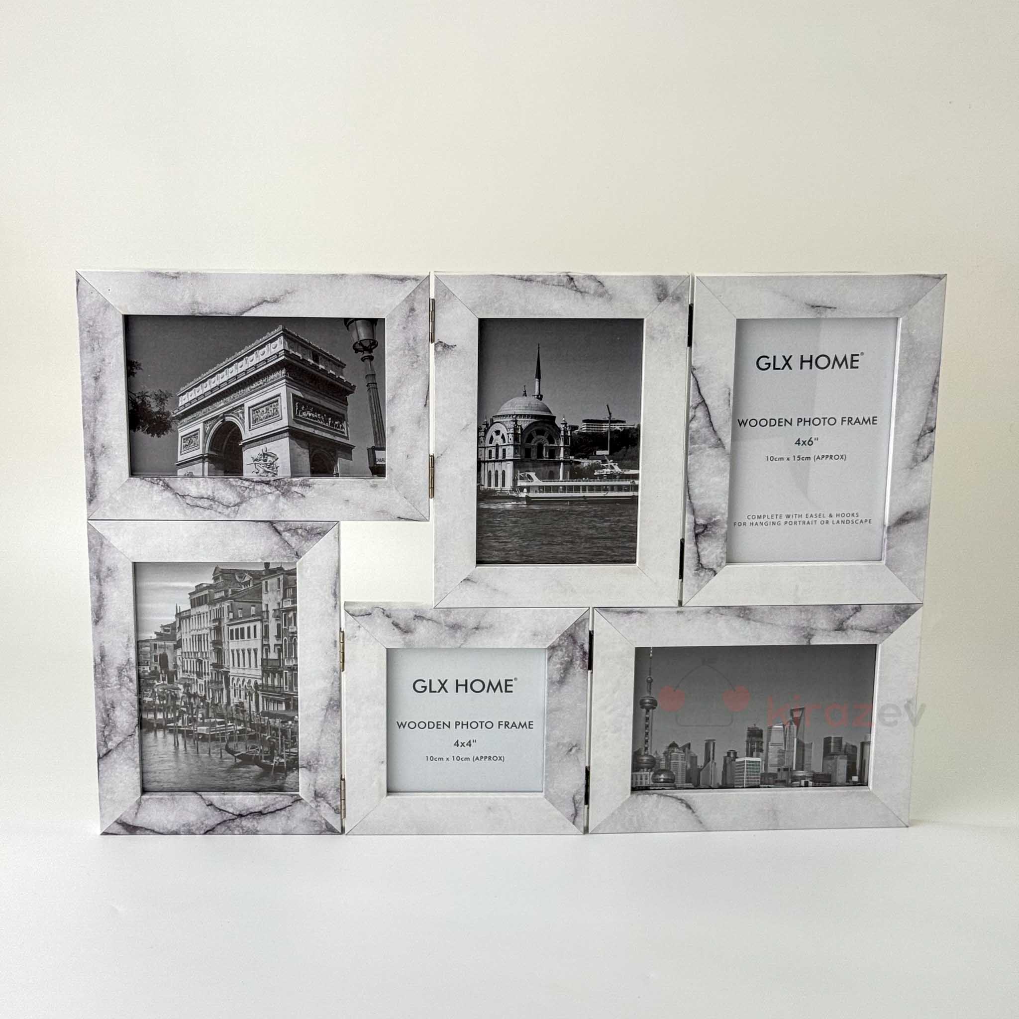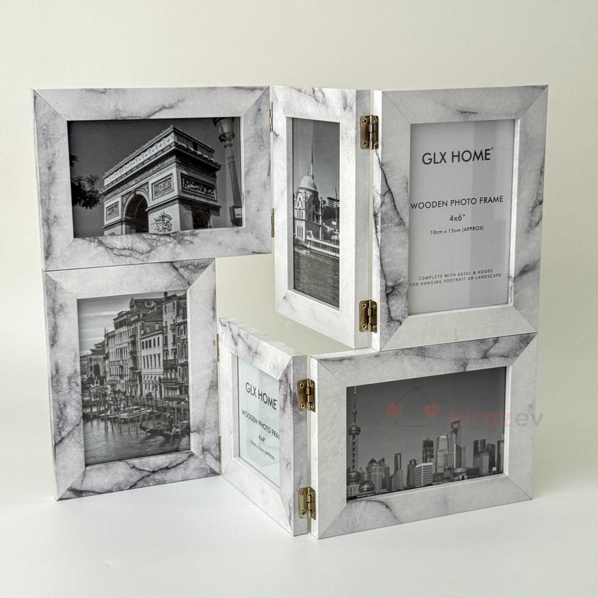 Galaxy serisinin bu 6’lı ahşap fotoğraf çerçevesi, farklı dekorasyon stillerine hitap eden üç renk seçeneğiyle sunuluyor: Bambu naturel, Retro kahverengi ve Beyaz mermer desen. Katlanabilir yapısı ve çoklu yerleşimi ile hem pratik hem dekoratif bir çözüm sunar.