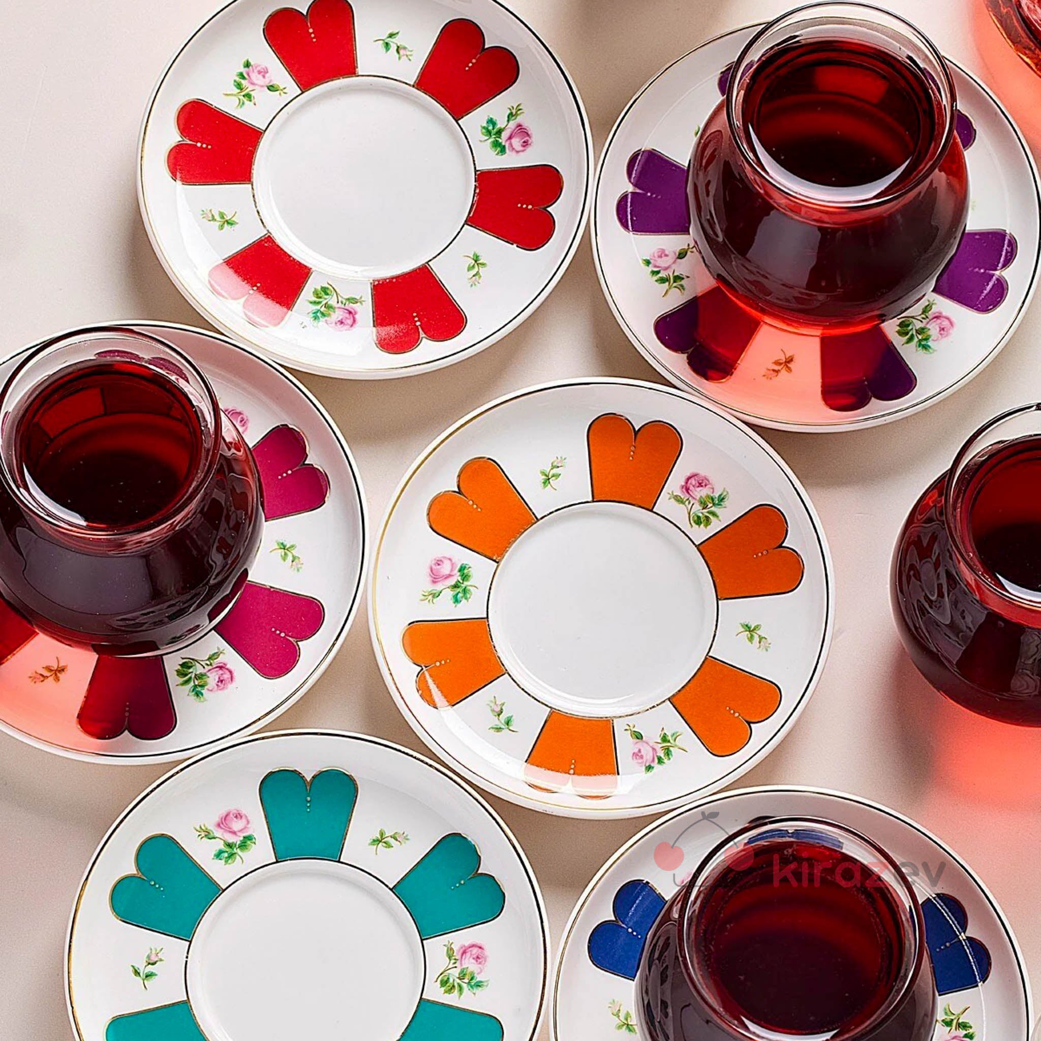 Renkli kalp desenleri ve nostaljik çizgileriyle öne çıkan Perotti Beyoğlu çay seti, çay saatlerinize sıcak ve şık bir atmosfer katar. Günlük kullanım ve misafir sunumları için idealdir.
