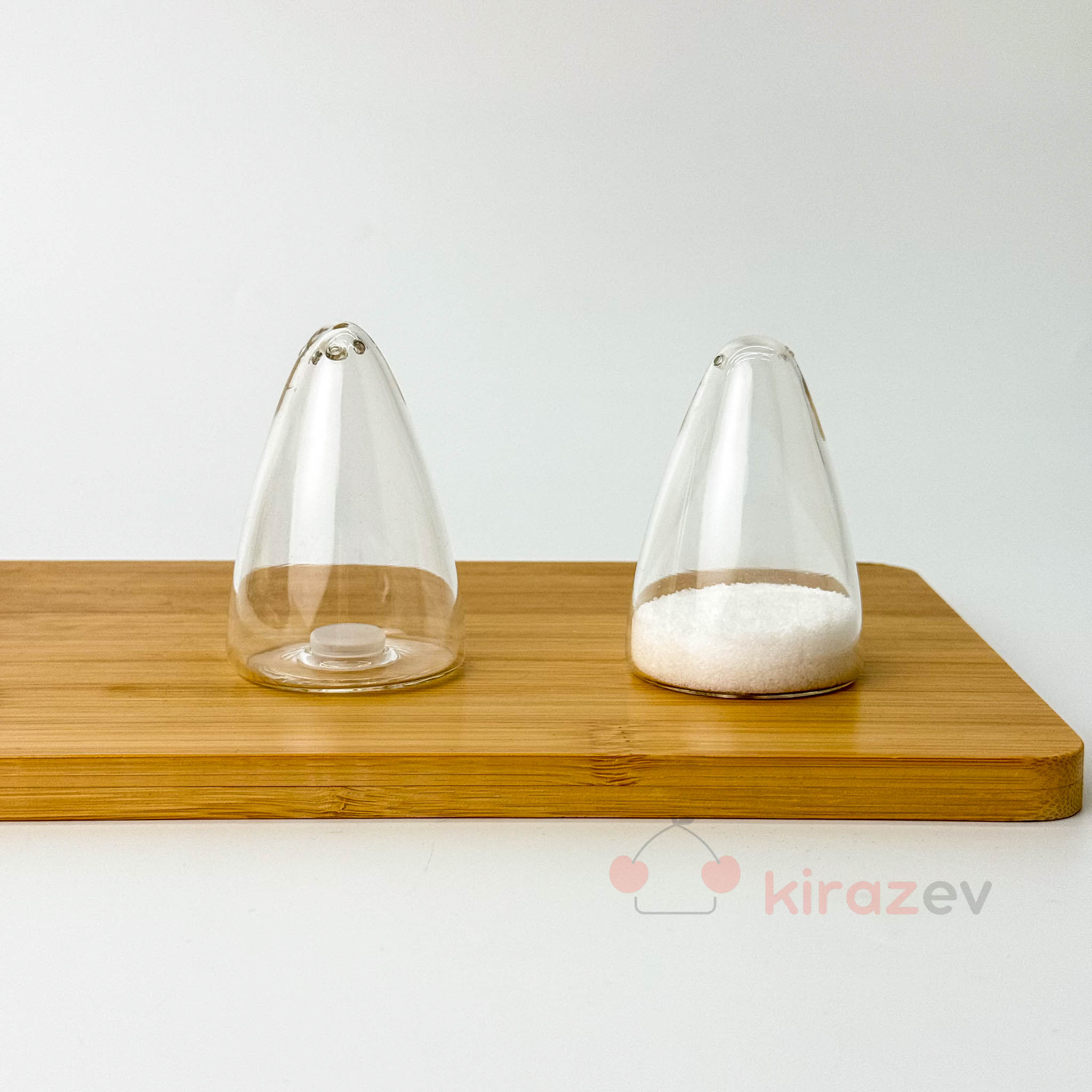 Minimalist çizgileri, şeffaf cam dokusu ve sivri formuyla dikkat çeken bu 2’li cam brosilikat tuzluk seti, sofralarınıza zarif bir dokunuş katıyor.