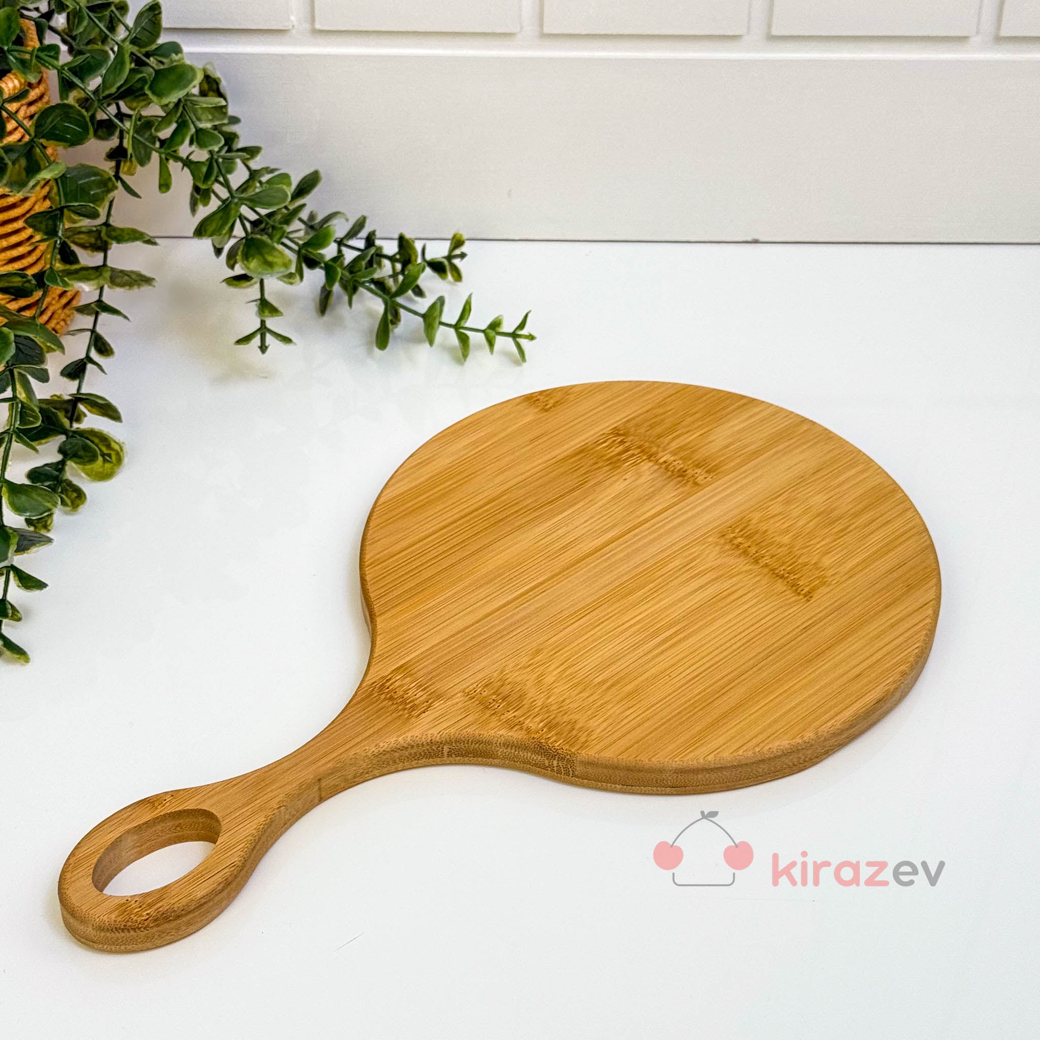 Yuvarlak Saplı Bambu Kesim & Sunum Panosu 33×20 cm